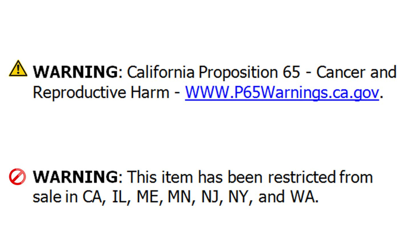 ⚠️ California Proposition 65 Warning : Some products sold on this website may expose you to chemicals known to the State of California to cause cancer, birth defects, or other reproductive harm.