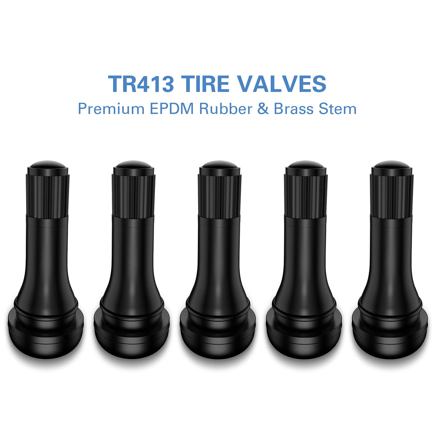 Q: How many valve stems are included in a package?A: Each package contains 5 high-quality TR413 Rubber Snap-in Valve Stems, making it convenient for replacing multiple tire valves or keeping spares on hand.