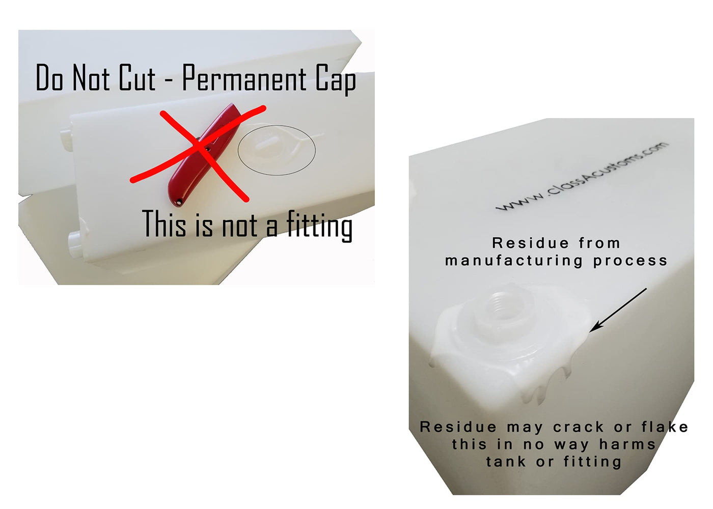 FRESH/DRINKING WATER SAFE – MADE IN THE USA by Class A Customs using NSF Certified Materials Tank & fittings made from DOW NSF International NSF/ANSI Std 61 approved Medium Density Polyethylene (MDPE) Resin SEAMLESS One-piece construction, no seams to burst COLOR Creamy White you can see waterline through tank. OEM PART No retail box - no install instructions Have a certified technician install all parts to prevent product damage and personal injury PREPARATION Tanks are made in a warehouse clean each tank prior to use to remove any debris, scuffs or marking from the manufacturing process. TANK MUST BE VENTED allowing air in and out when in use. *DO NOT PRESSURIZE TANK* do not make a sealed connection from garden hose directly to tank damage will occur. DO NOT over-tighten fittings damage will occur. MOUNTING & BRACING Place tank on level surface and brace to prevent tank from moving during transit. DO NOT hang tank by straps. DO NOT place weight on tank. FOOD VENDORS - BEFORE PURCHASING - Verify all requirements with health department where inspection will be made.