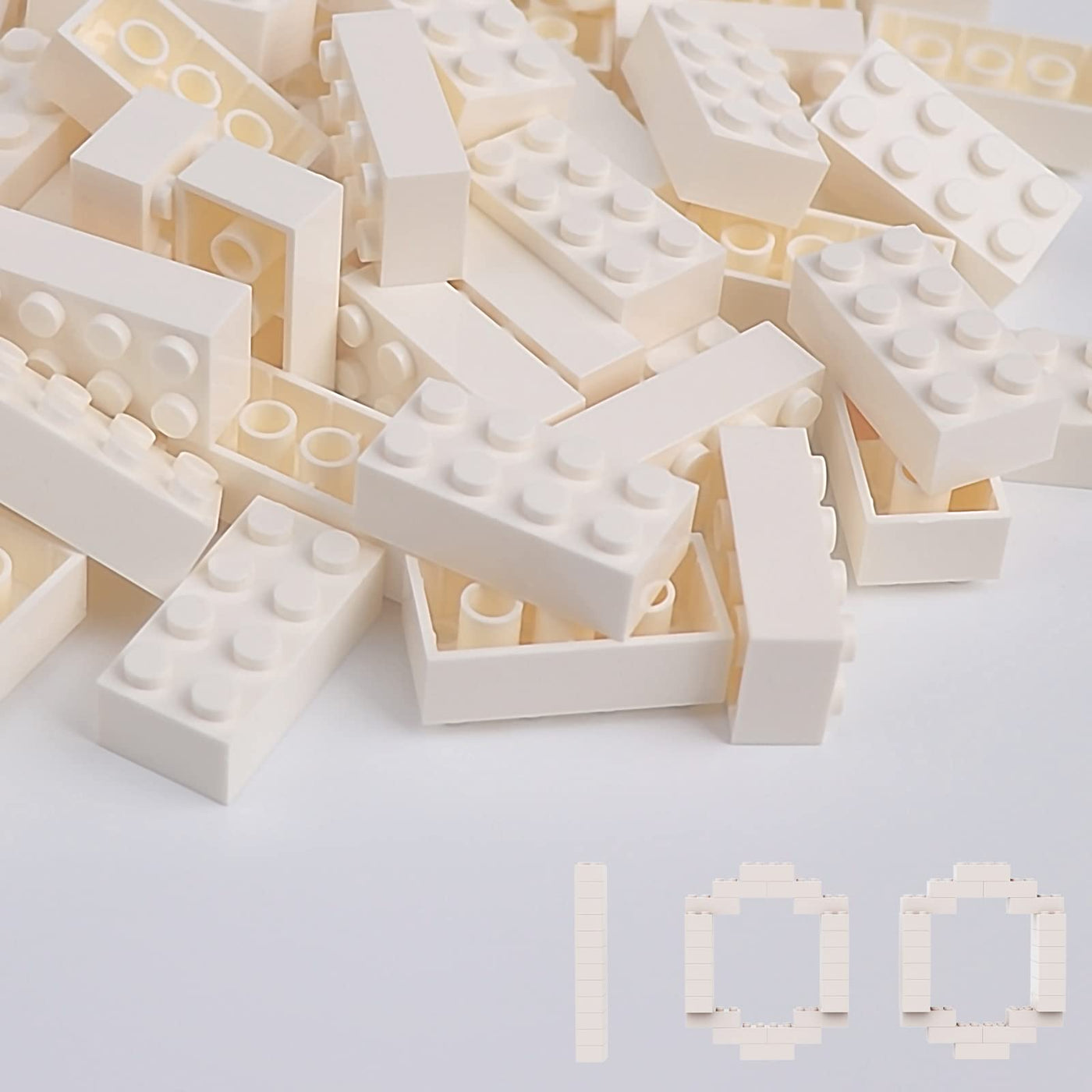 Classic Building Bricks 100 Pieces 2X4 White, Classic Brick Block Parts And Pieces 3001, Compatible With Lego, Age 6+ Creative B