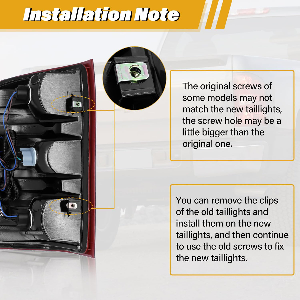Q: How do I install the CLERYYE Tail Light Assembly?A: Installation of the CLERYYE Tail Light Assembly is designed to be plug-and-play, allowing you to complete the process in about 20 minutes without professional help. Detailed installation steps can be found in the product description.