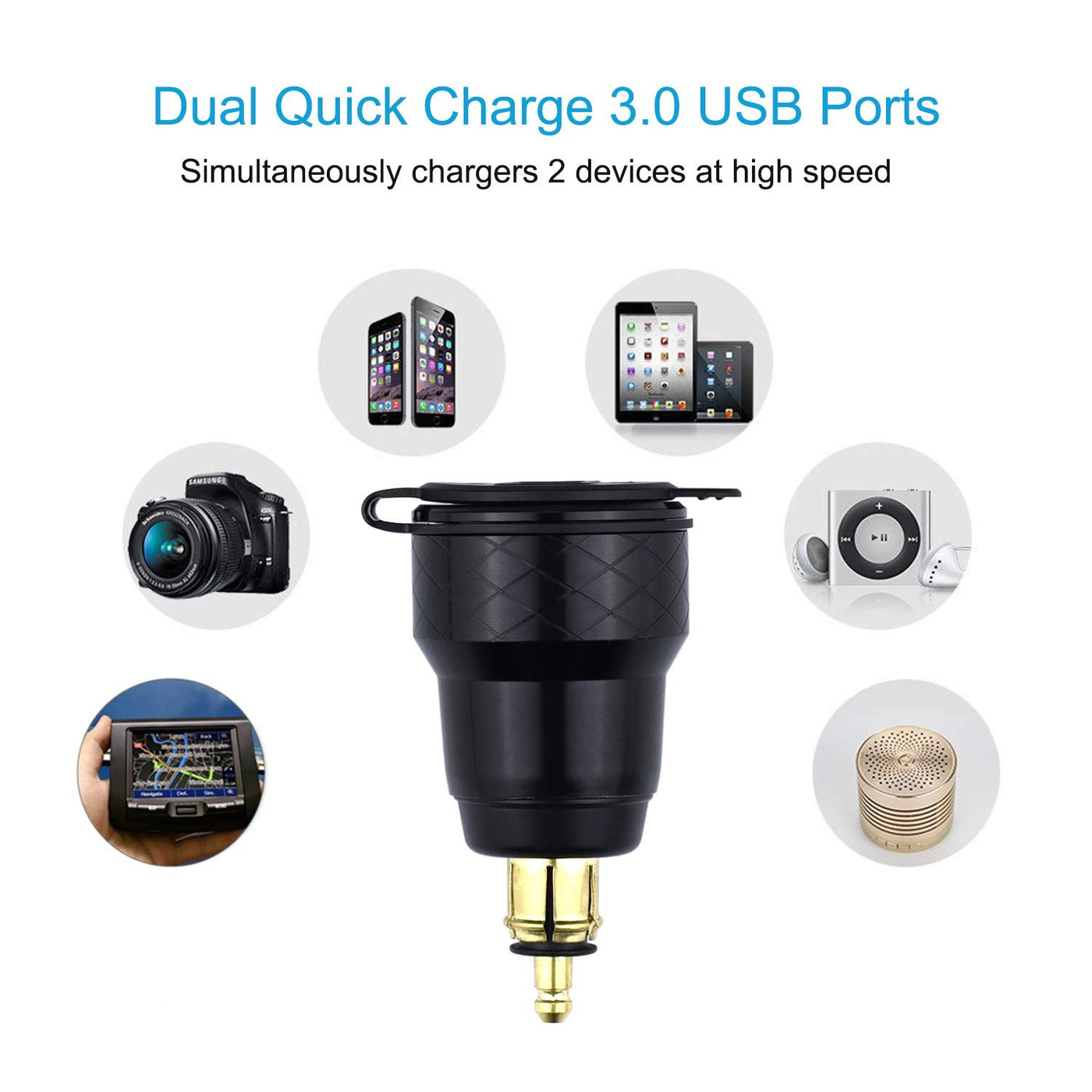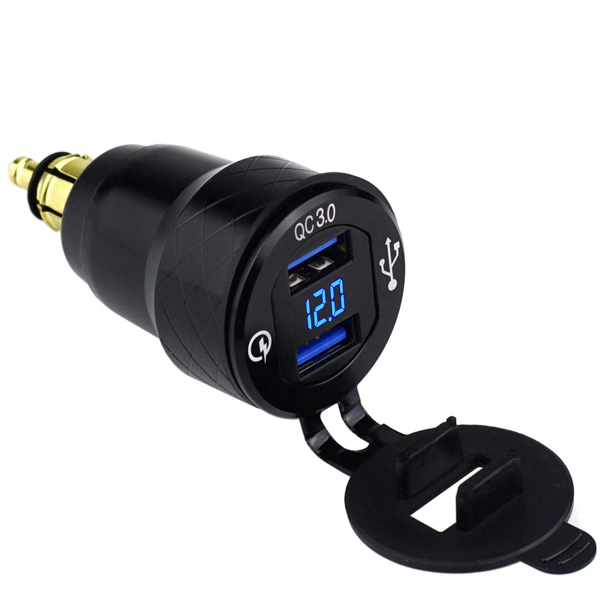 Cllena DIN Hella Plug to Quick Charge 3.0 Dual USB Charger Adapter with LED Voltmeter Smart IC Technology With intelligent power IC, outputs stable current without fluctuation. Broad Compatibility Suitable for all Smartphones, tablets and other accessories can charge much faster, and you can save time. The quick charge ports work with most cell phones, tablets, digital cameras, PDAs, PSP, MP3, MP4 and other USB devices. Specification: Color: Black Material: Aluminum Alloy + ABS Input Voltage: 12V - 24V QC 3.0 USB Output: 5V - 6.5V: 3A; 6.5V - 9V: 2A; 9V - 12V: 1.5A Voltage Display Range: DC 6V - 30V Dimension: 35mm x 71mm(Dia. x H) Multi-purposes: supply power for cellphone, tablet, GPS and other USB-devices Package Include: 1 * DIN Hella USB with Voltmeter Adapter NOTE: 1. The voltage indicator ONLY works when the device is connected to the battery. 2. Since the iPhone series does not support fast charging, charging the iPhone is normal speed. 3. Can't support Super Fast Change(5V 4A), such as HUAWEI P20, OnePlug 5T/6, ETC.