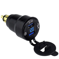 Cllena Din Hella Plug To Dual Quick Charge 3.0 Usb Charger Adapter With Led Voltmeter For Bmw Motorcycle (Blue)