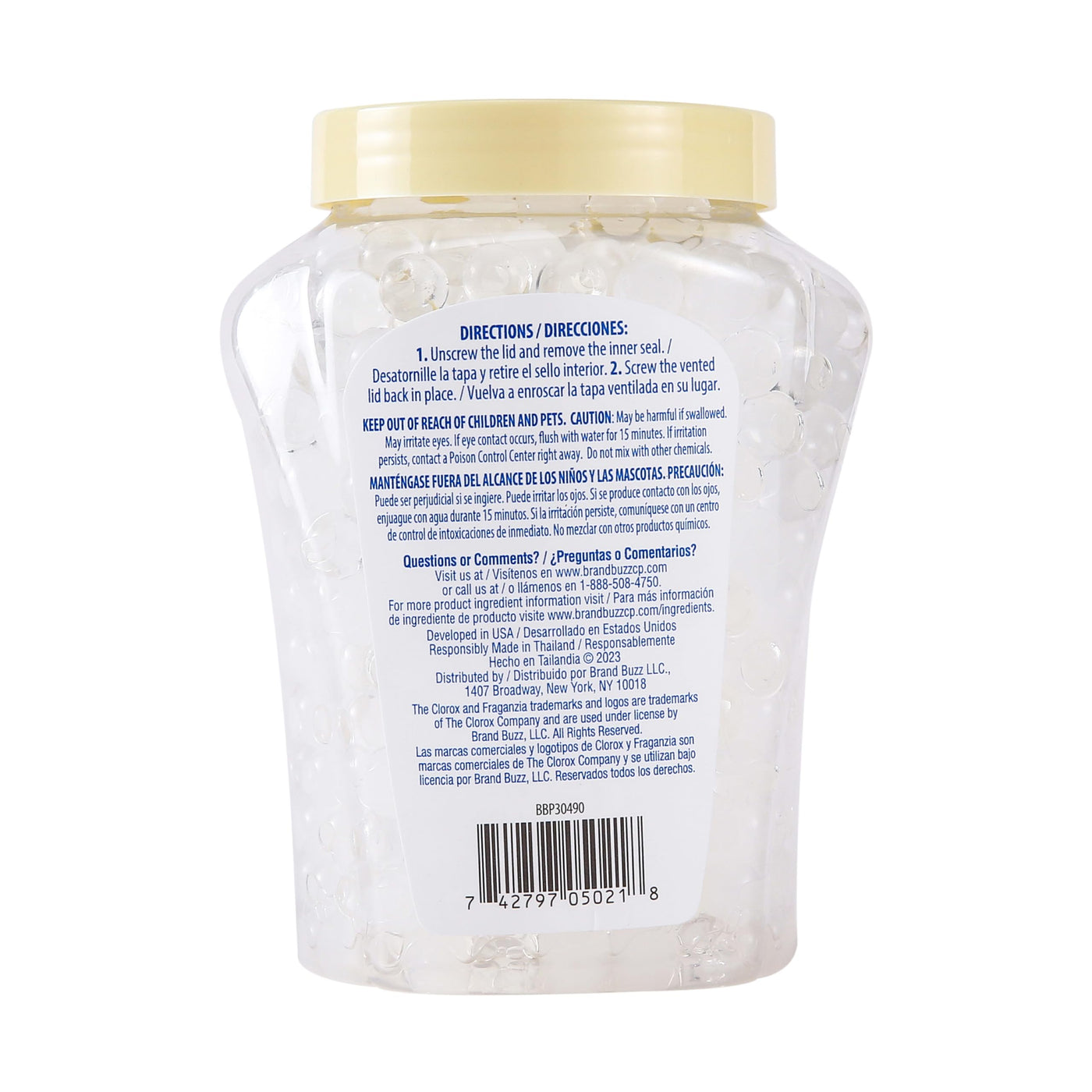 The unique and inviting scents of Clorox Fraganzia enhance your home, car, or office in a quick and convenient way. The nature-inspired scents such as White Lily Bloom, Apple Cinnamon, Vanilla Honeycomb, and Cherry Burst exude lasting freshness wherever you choose to use them. It isn't unusual for recurring, unwanted smells to make their way into your living room, bedroom, bathroom, car, or kitchen. Clorox Fraganzia Air Freshener Crystal Beads can give these areas an instant scent makeover when it needs it most. These gel beads are convenient to use and don't require any maintenance. Simply open the jar, remove the protective seal, replace the vented lid, and place the jar anywhere you need a quick boost of fresh scent. You can also pour the beads into your favorite jar, vase, or potpourri dish to incorporate into your d cor - just be sure to keep out of reach of children and pets for safety. The light and soothing Vanilla Honeycomb scent is light and pleasant and not overpowering, leaving a lovely sweet, cozy aroma in any room. Browse our whole collection of Vanilla Honeycomb products from Clorox Fraganzia or try a new aroma from our wide range of nature-inspired scents. It will be hard to pick which room to leave your container of Clorox Fraganzia Air Freshener Beads in. Directions: 1. Unscrew the lid and remove the seal from lid. 2. Peel off the top label from the lid. 3. Screw vented lid back in place. Enjoy! CAUTION: May be harmful if swallowed, May irritate eyes. Do not mix with other chemicals. Do not get in eyes. Keep out of reach of children and pets.