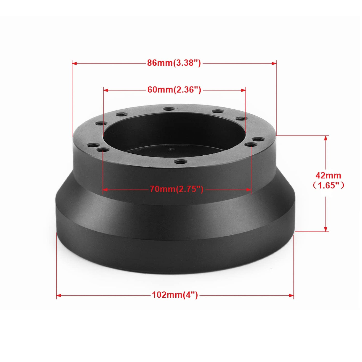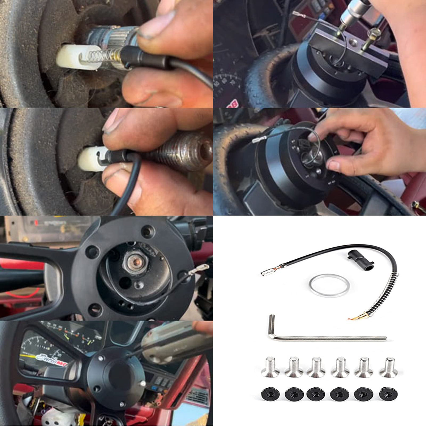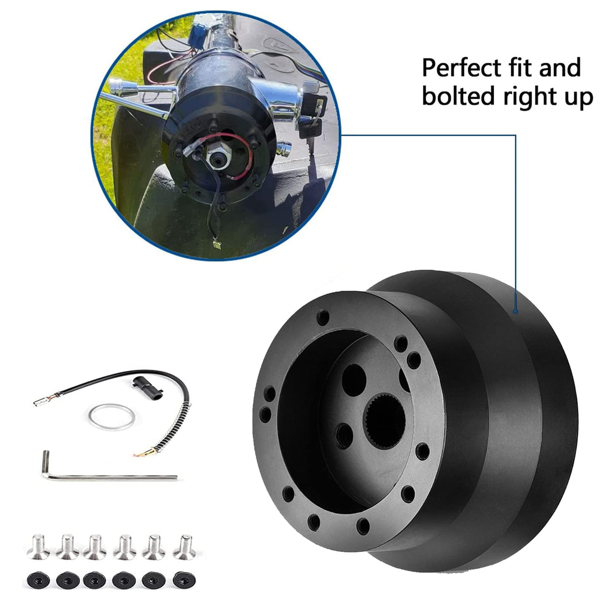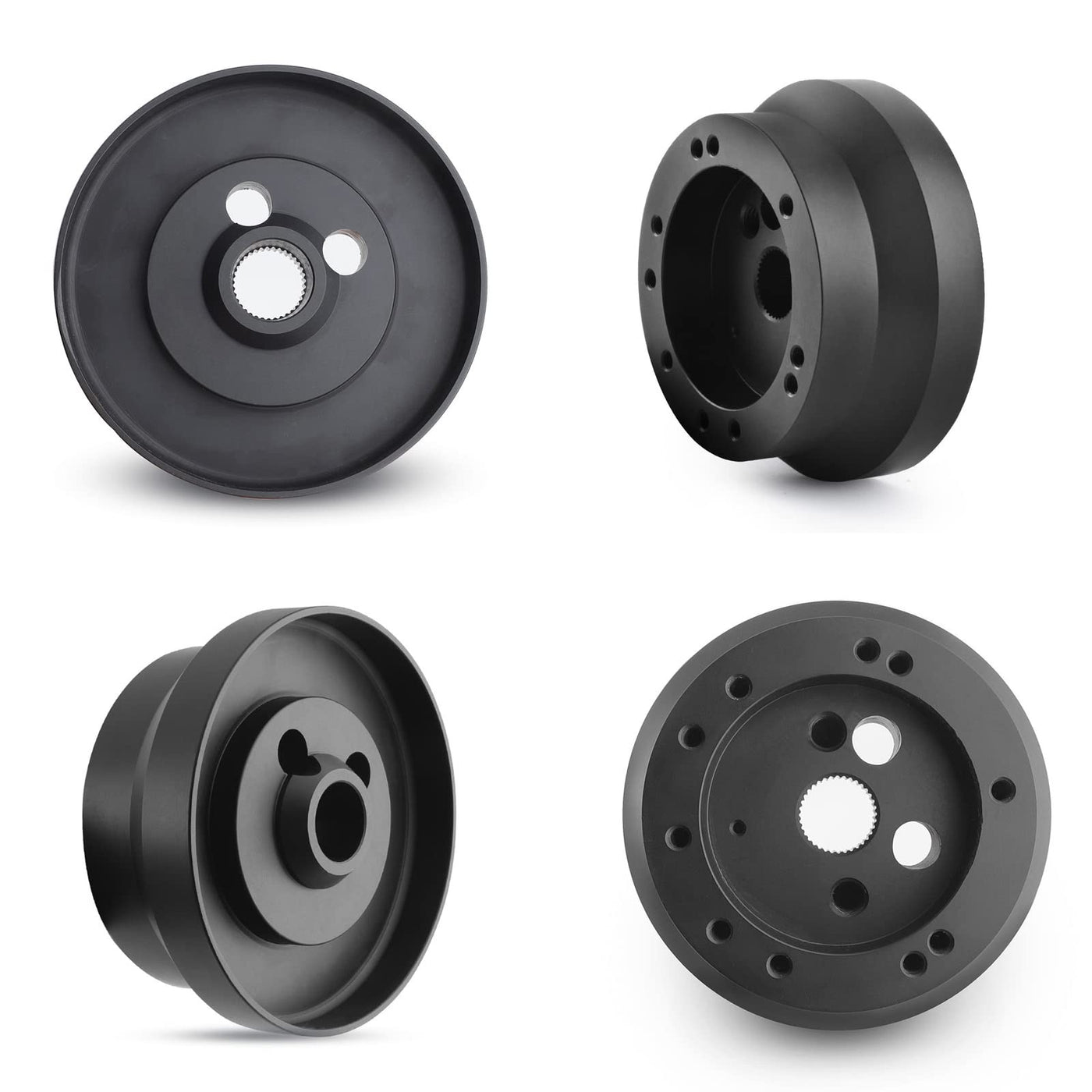 Feature: Easy to install, no need to modify the vehicle, easy to use, save your time and effort. Modify the steering wheel more stable and more durable ensure bring you a better driving experience. Fitment: For 1969-1994 Chevy car models except Corvette, Sprint, Spectrum, 1986-1988 Nova, 1969 Corvair For 1974-1994 Chevy truck models For 1982-1994 Chevy / GMC Vans For 1969-1993 Buick,Pontiac models For 1969-1989 Cadillac models without telescopic column For 1970-1988 American Motors models For 1978-1991 Chrysler, Dodge, and Plymouth Cars with a tilt column For 1979-1981 Chrysler, Dodge, and Plymouth 2WD & 4WD Pickups, Trailduster, Ramcharger For 1974-1995 Cherokee, Wagoneer, and pickup For 1976-1995 CJ5, CJ6, CJ7, Wrangler, Scrambler, and Comanche Package Include: 1 Set 5&6 Hole Aluminum Steering Wheel Hub Adapter Kit Installation: 1.Put the spring in the plastic contact housing , then put the black sleeve through the wire and put them in the plastic contact housing. 2.Twist the black plastic sleeve so the notch fits into position on the plastic contact housing of the column . 3.Install the adapter securely over the spline shaft. Tighten the shaft nut over the adapter and securely tighten. 4.Install the steering first, then install the horn.