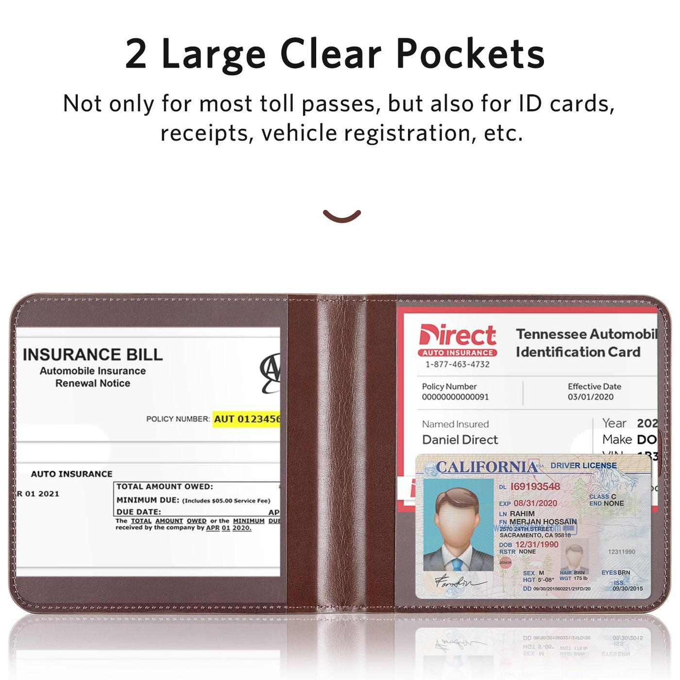 Q: How many documents can the holder accommodate?A: This car document holder includes two large pockets specifically designed to securely store your car registration, insurance documents, and other important information.