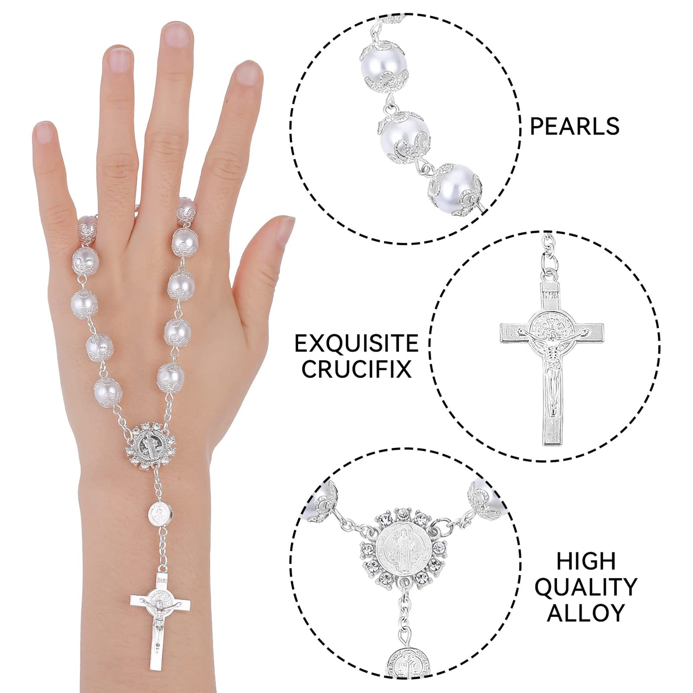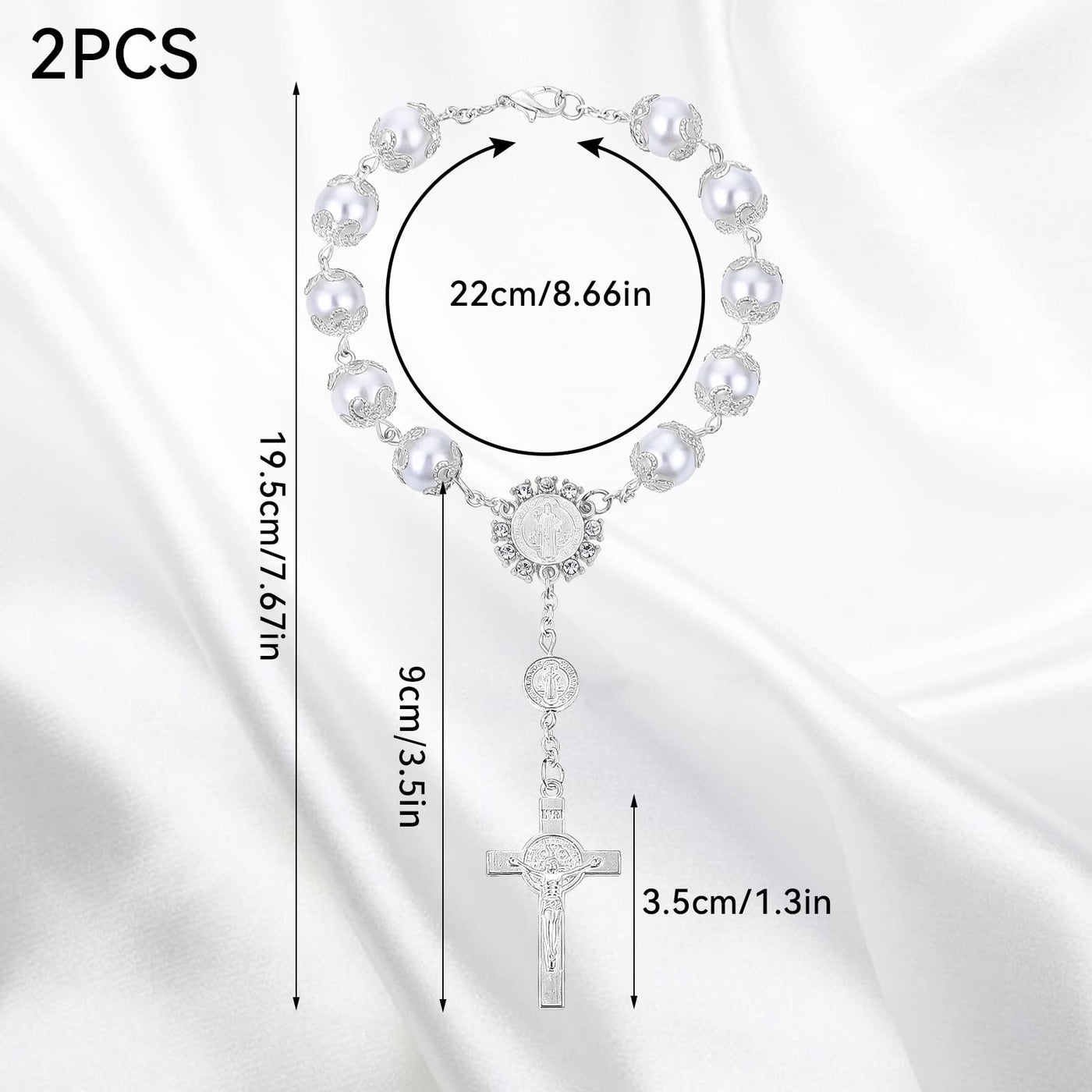 Cobee Car Rosary for Rearview Mirror, 2 Pieces Car Mirror Hanging Cross Auto Rosary Rear View Mirror Pendant Car Hanging Accessories Interior Decors for Women Men Specifications: Material:faux pearl,alloy Color: silver,gold Total Size: 19.5cm/7.67in Package: 2 x Car Mirror Hanging Cross