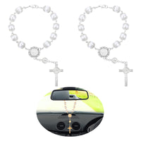 Cobee Car Rosary For Rearview Mirror, 2 Pieces Car Mirror Hanging Cross Auto Rosary Rear View Mirror Pendant Car Hanging Accesso