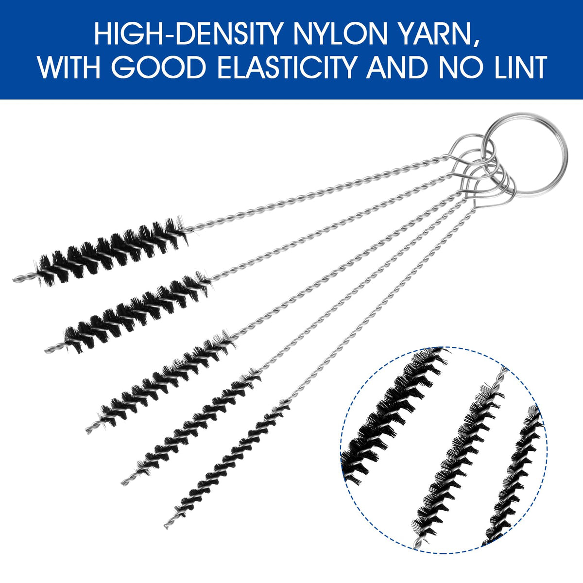 Q: How do I use the cleaning needles and brushes in this kit?A: To use the cleaning needles and brushes, select the appropriate size for the orifice you wish to clean. Insert the needle or brush into the passage, and gently move it back and forth to clear any blockages. This set is designed to reach tight spaces and ensure thorough cleaning.