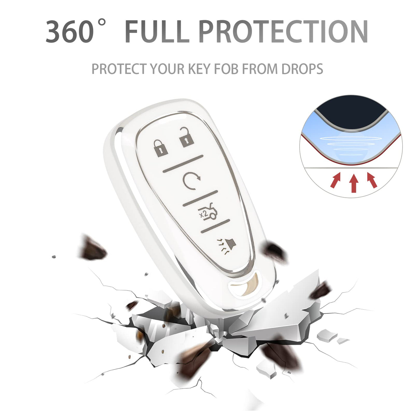 COGEEK Key Fob Cover with Bling Lanyard, Compatible with 2017 2018 2019 2020 2021 Malibu Camaro Trax Traverse Sonic Cruze Equino