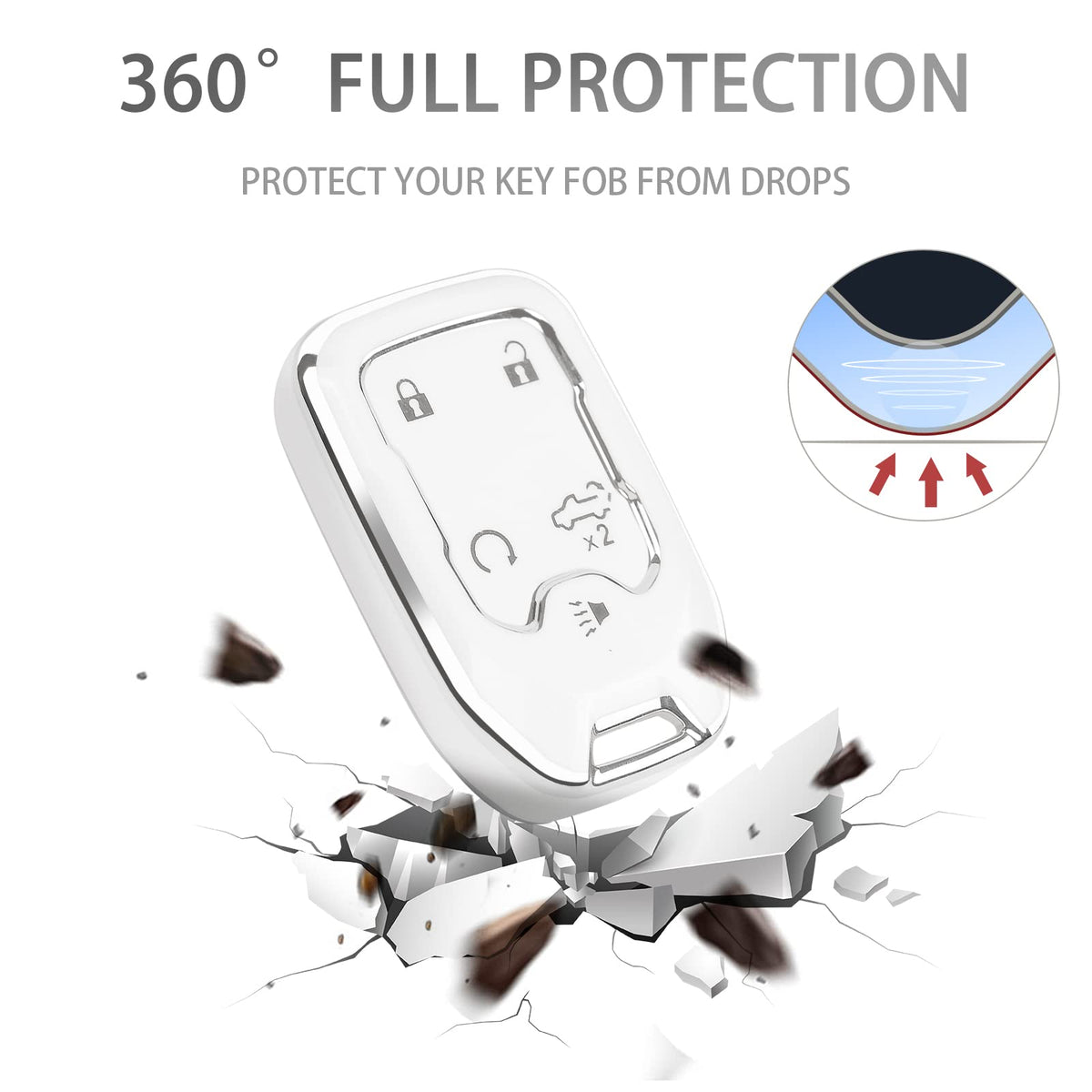 COGEEK Key Fob Cover with Bling Lanyard, Compatible with 2019 2020 2021 2022 1500 2500HD 3500HD Terrain Acadia 5 Buttons Smart K