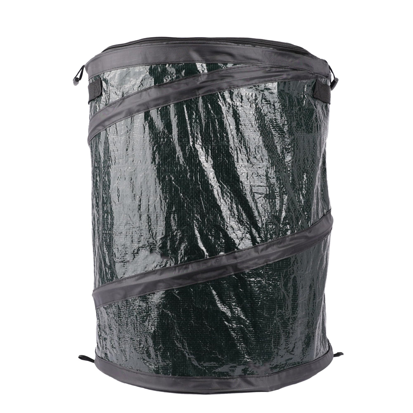 Great for camping, RV's or seasonal storage, this compact size pop-up trash can stores flat for convenience and expands in seconds for a handy garbage or storage bin. Spring steel container pops up and holds its shape.