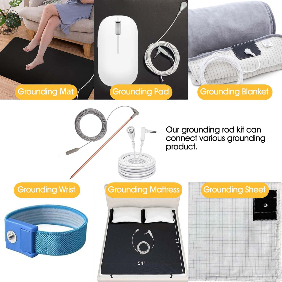 Q: What products can I use with the Copper Grounding Rod?A: The Copper Grounding Rod is compatible with various grounding products, such as grounding mats, sheets, pillows, and blankets, helping to improve energy, sleep quality, and reduce anxiety.