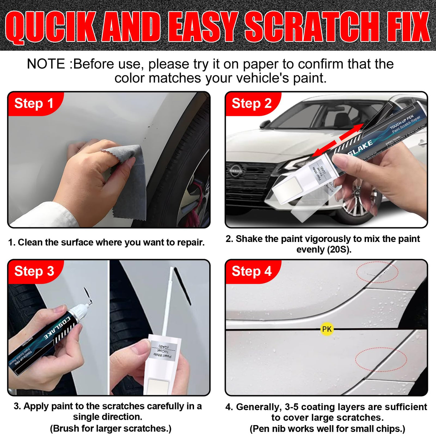 COSLAKE Car Touch Up Paint(Pearl White TriCoat(QAB)) for Nissan, Car Paint Scratch Repair Kit, Quick & Easy Solution to Repair,