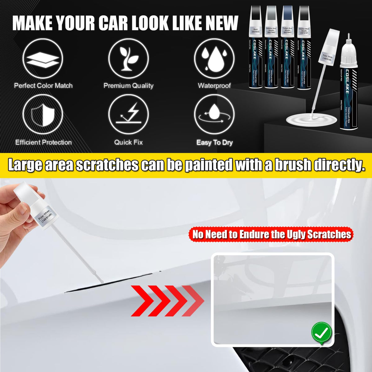 COSLAKE Car Touch Up Paint(Polar White(149/9149)) for Mercedes-Benz, Car Paint Scratch Repair Kit, Quick & Easy Solution to Repa