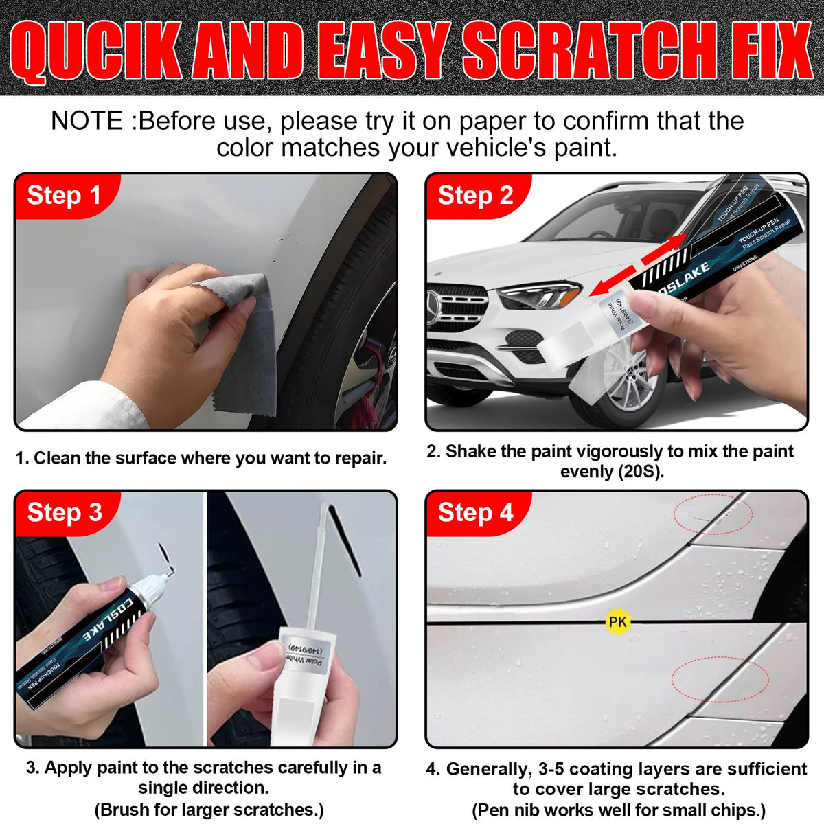 COSLAKE Car Touch Up Paint(Selenite Grey Metallic(992/7992)) for Mercedes-Benz, Car Paint Scratch Repair Kit, Quick & Easy Solut