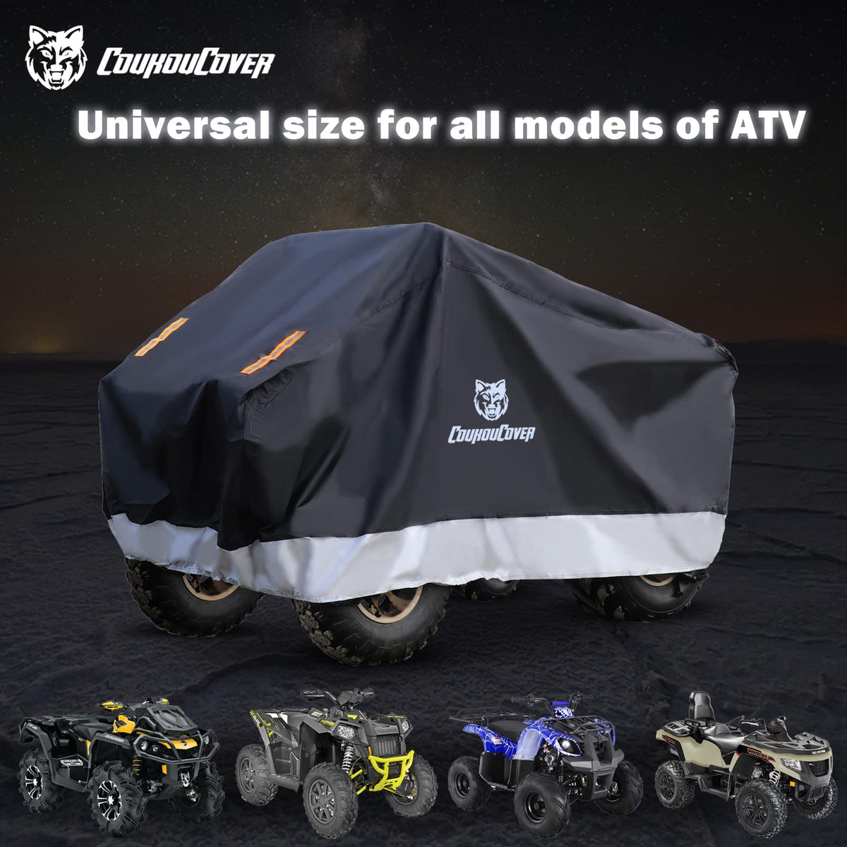 Q: What size ATV does the CoukouCover ATV Cover fit?A: The CoukouCover ATV Cover is designed to fit most 4-wheel ATVs up to 86 inches in length, making it suitable for models from brands like Honda, Kawasaki, Yamaha, Polaris, and Suzuki.