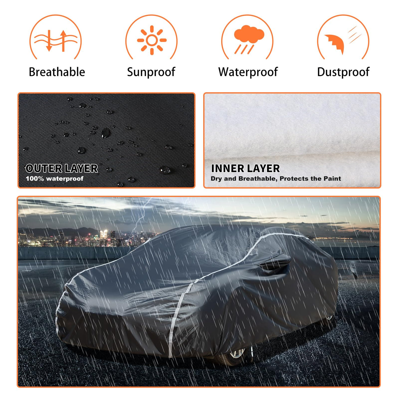 Coupe Car Cover Waterproof All Weather for Automobiles,100% Waterproof Outdoor Car Covers Rain Snow UV Dust Protection, Heavy Duty Car Covers for Automobiles Full Exterior Covers Fit Sport Car