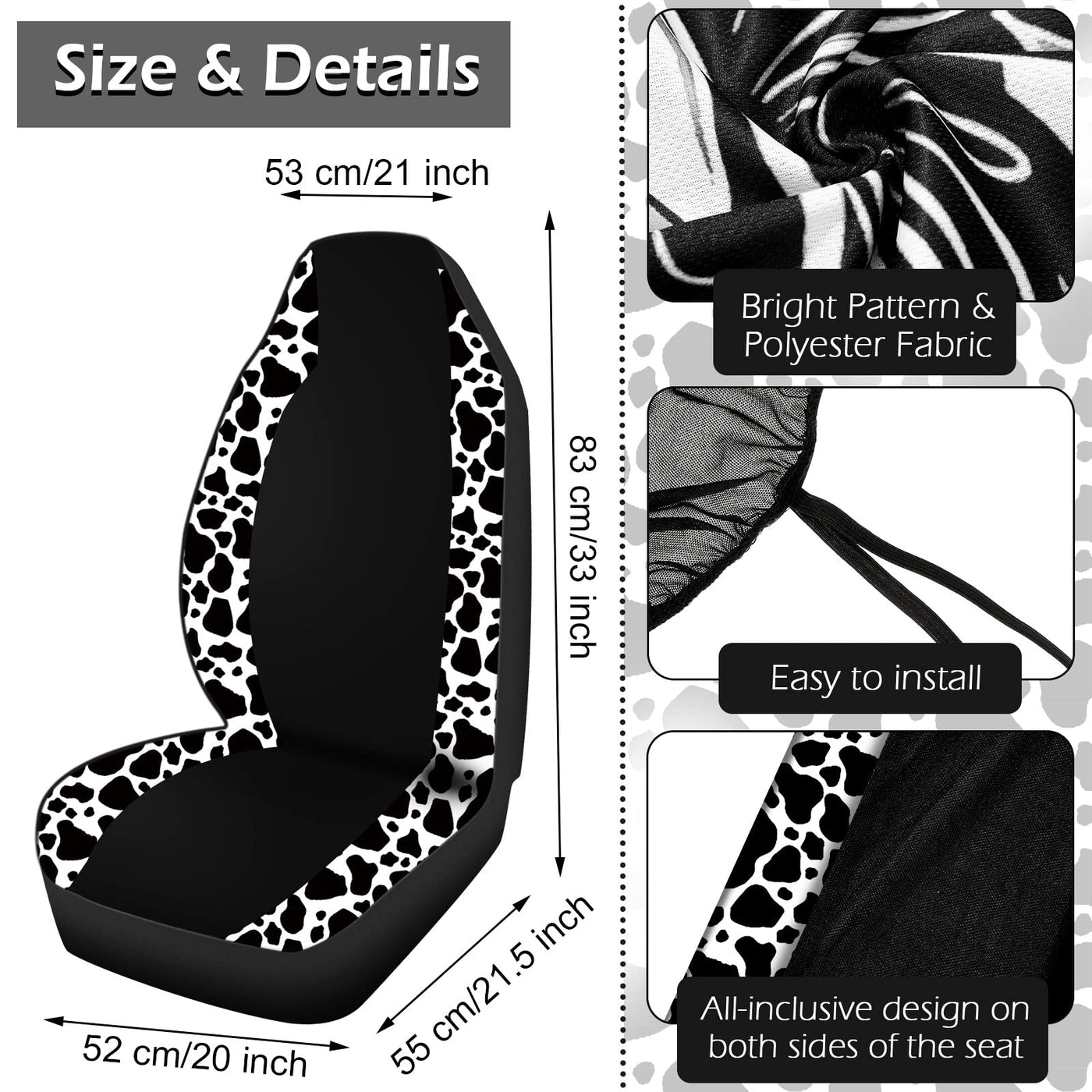 Q: Can the cow print car accessories protect my car from damage?A: Absolutely! The thickened design of the car seat covers provides reliable protection against scratches, dust, stains, and other wear and tear, keeping your car's interior looking fresh.