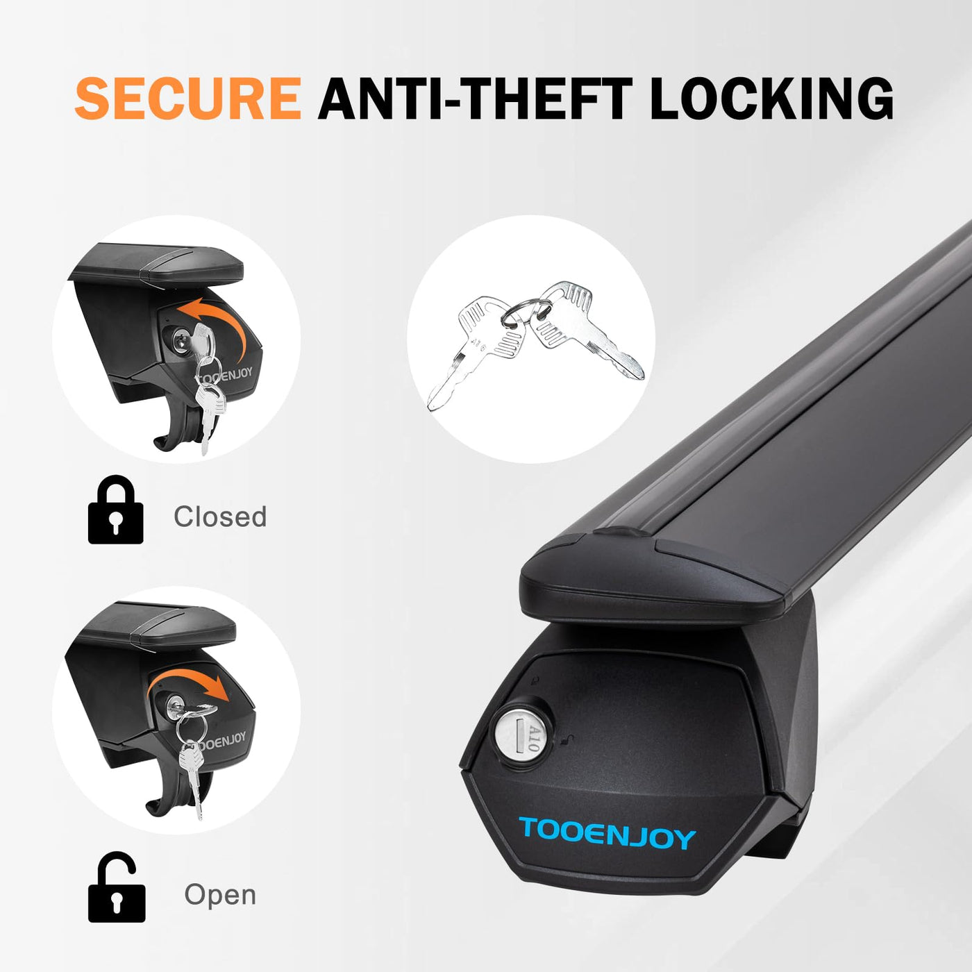 COWVIE 53 Inch Aluminum Roof Rack Cross Bars for Raised Side Rails, Adjustable Cargo Bars with Keyed Locks, Hold 198 LBS, Black