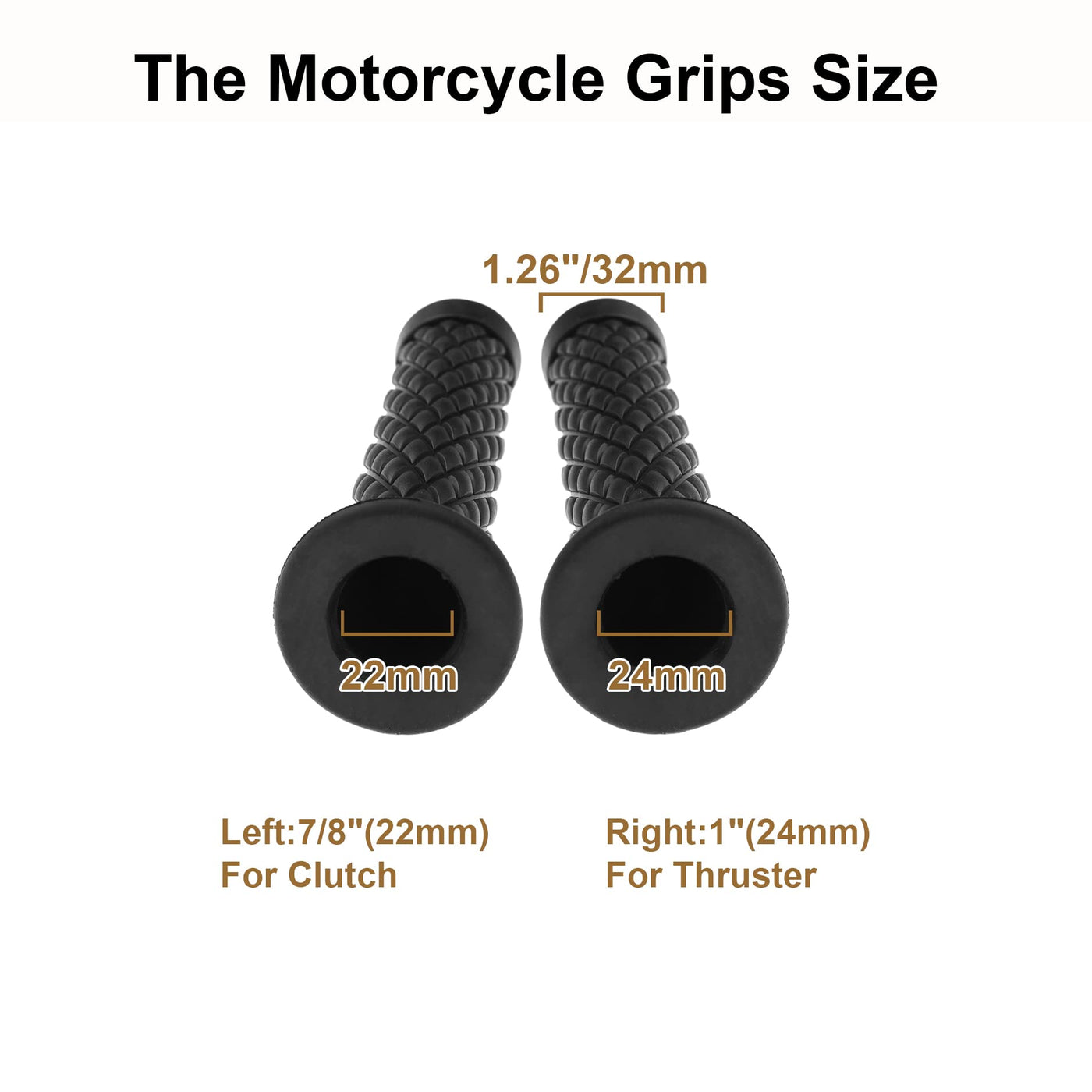 Fitment: These Motorcycle Grips Fit For All 7/8'' (22Mm) Left Handlebar And 1'' (24Mm) Right Handlebar.