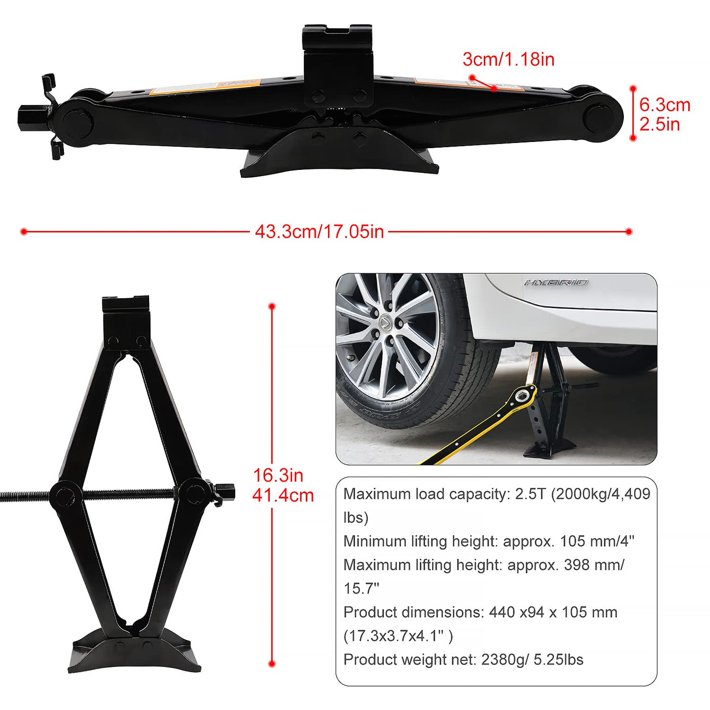 Cprosp Scissor Jack 2.5 Tons (5,511 Lbs) Capacity With Ratchet Handle Effort Saving Just For Emergency Use, Not For Weekly Proje