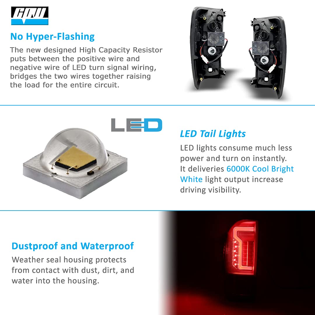 Cpw Tail Lights Compatible With [2016 2017 2018 2019 2020 2021 2022 2023 Toyota Tacoma] Led Tube Bar Tail Lights (Black/Smoke Le