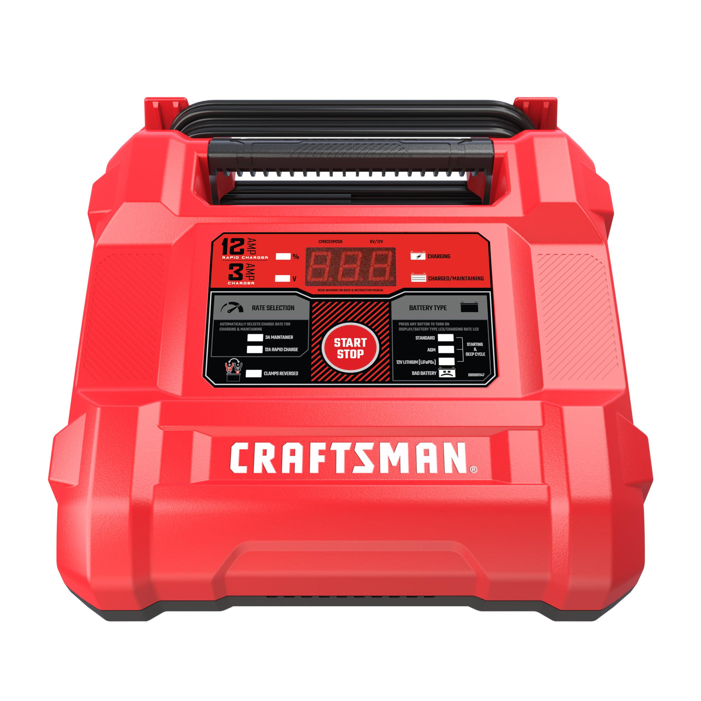 Unleash Powerful Performance with the CRAFTSMAN CMXCESM258 - The Ultimate 4-in-1 Automotive Battery Charger!Introducing the CRAFTSMAN CMXCESM258 4-in-1 Automotive Battery Charger - your ultimate solution for all your battery needs! With a powerful 12 Amp output, this versatile charger is compatible with a wide range of battery types, including standard, AGM, lithium (LiFePO4), and deep-cycle batteries. Whether you're charging, maintaining, desulfating, or testing, this unit has you covered!Equipped with a microprocessor-controlled system, the CRAFTSMAN CMXCESM258 automatically detects your batterys voltage to optimize charging performance. Enjoy peace of mind with features like reverse hook-up protection, which prevents operation if clamps are incorrectly connected, and a bad battery indication alert. The bright digital display and intuitive LED indicators make monitoring effortless.Plus, with a generous 12-foot reach from the 6-foot power cord and 6-foot battery cables, you'll have the flexibility you need in your garage. Trust in CRAFTSMAN's quality, backed by a 2-year limited warranty. Upgrade your battery maintenance game today and ensure your batteries are always ready to go!En espaol (ES): El cargador de bater as para autom viles CRAFTSMAN CMXCESM258 de 12 amperios a 6 voltios/12 voltios es una unidad vers til compatible con la mayor a de los tipos de bater a, incluidas las est ndares, AGM, de litio (LiFePO4) y de ciclo profundo. Diseada para a mayor confiabilidad, la unidad CMXCESM258 de Craftsman cuenta con modos de carga r pida de 12 amperios y de mantenimiento de 3 amperios. Totalmente autom tico, este cargador controlado por microprocesador detectar autom ticamente el voltaje de la bater a conectada y ajustar el amperaje y la carga. Otras caracter sticas son protecci n contra conexi n inversa para evitar que el cargador funcione si las pinzas est n al rev s, indicador de bater a defectuosa, pantalla digital, indicadores LED y controles mediante pulsadores. Un cable de alimentaci n de seis pies y cables de bater a de 6 pies proporcionan a los usuarios un c modo alcance de 12 pies para facilitar la conexi n en el garaje. La unidad est respaldada por una garant a limitada de dos aos.En franais (FR) : Le CRAFTSMAN CMXCESM258 12-Amp 6-Volt/12-Volt Automotive Battery Charger (chargeur de batterie) est un appareil polyvalent compatible avec la plupart des types de batteries, y compris les batteries standard, AGM, au lithium (LiFePO4) et d charge profonde. Conu pour la fiabilit , le Craftsman CMXCESM258 dispose de modes de recharge rapide de 12 ampres et de maintien de 3 ampres. Compltement automatique, ce chargeur command par microprocesseur d tecte automatiquement la tension dune batterie connect e et rgle lamp rage et la charge. Parmi les autres caract ristiques, mentionnons la protection de connexion inverse pour empcher le chargeur de fonctionner si les pinces sont invers es, lindication de la batterie d fectueuse, un afficheur num rique, des t moins DEL et des commandes bouton-poussoir. Un cordon dalimentation de six pieds et des cbles de batterie de 6 pieds offrent aux utilisateurs une port e confortable de 12 pieds pour faciliter le branchement dans votre garage. Lappareil est couvert par une garantie limit e de deux ans.