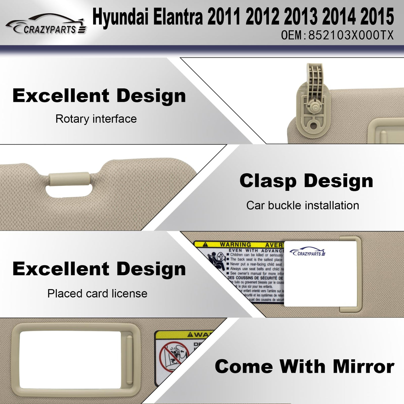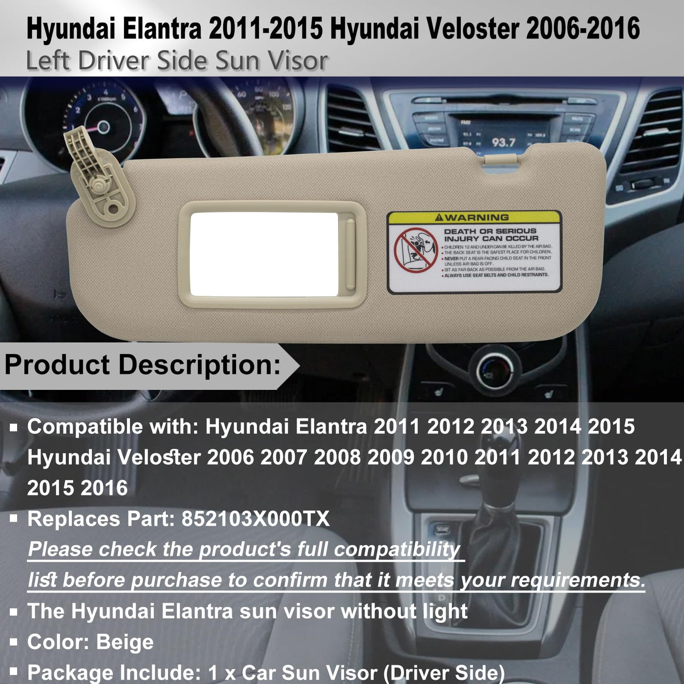 Crazyparts Driver Left Side Sun Visor Compatible With Hyundai Elantra 2011-2015 Hyundai Veloster 2006-2016 Replacement Oem Numbe