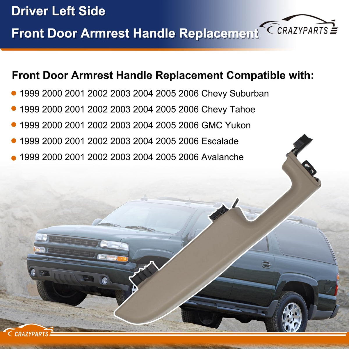 Crazyparts Passenger Right Side Front Door Armrest Handle Replacement Compatible With 1999-06 Chevy Suburban/Tahoe, Gmc Yukon/Av