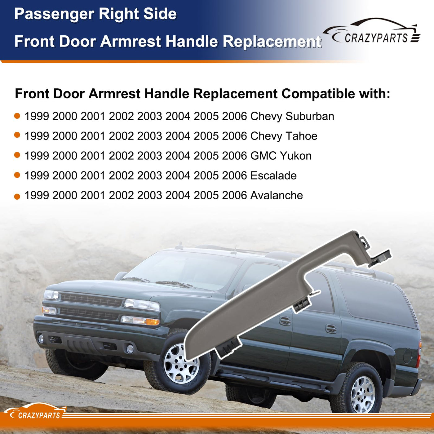 Crazyparts Right Passenger Side Front Door Armrest Handle Replacement Compatible With 1999-06 Chevy Suburban/Tahoe, Gmc Yukon/Av
