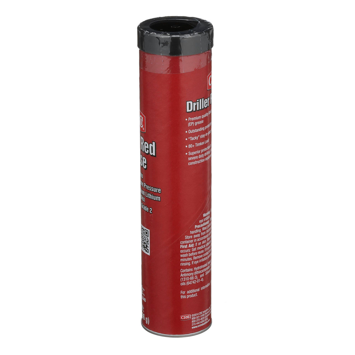 Driller Red Grease is a multi-purpose lithium complex formula ideal for drilling and mining applications, backing plates, ball joints, chassis points, construction ball & roller bearings, idler bearings, industrial applications, pillow block bearings, sprocket bearings, U-joints, water pumps, wheel bearings. It has anti-corrosive properties and can withstand high pressure and temperature. This grease has a working temperature of -10 to 400 F (-23 to 204 C), and a drop point of 550 F. It has a Timken load of 80 lbs.