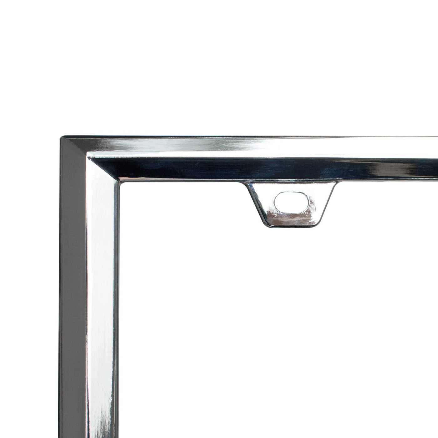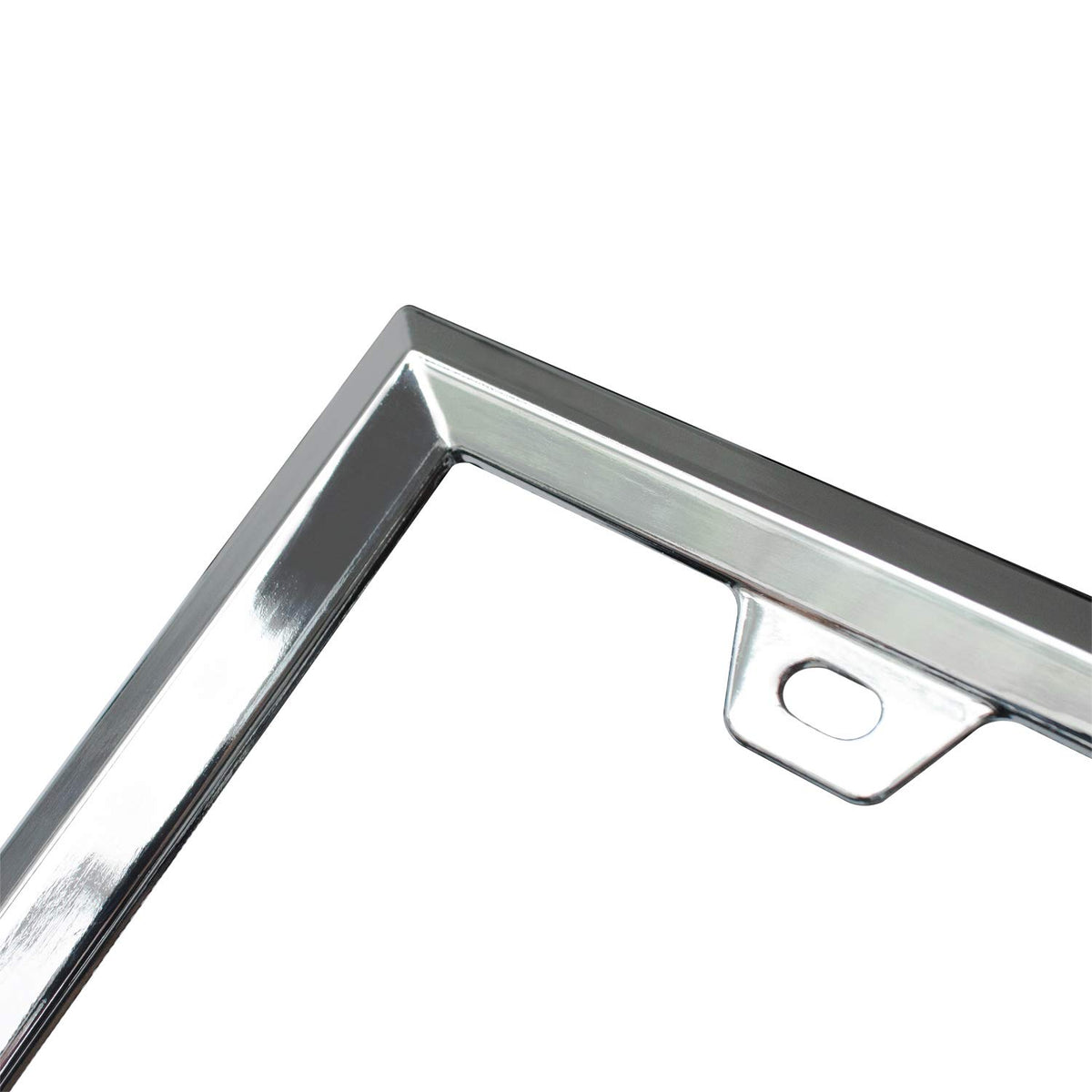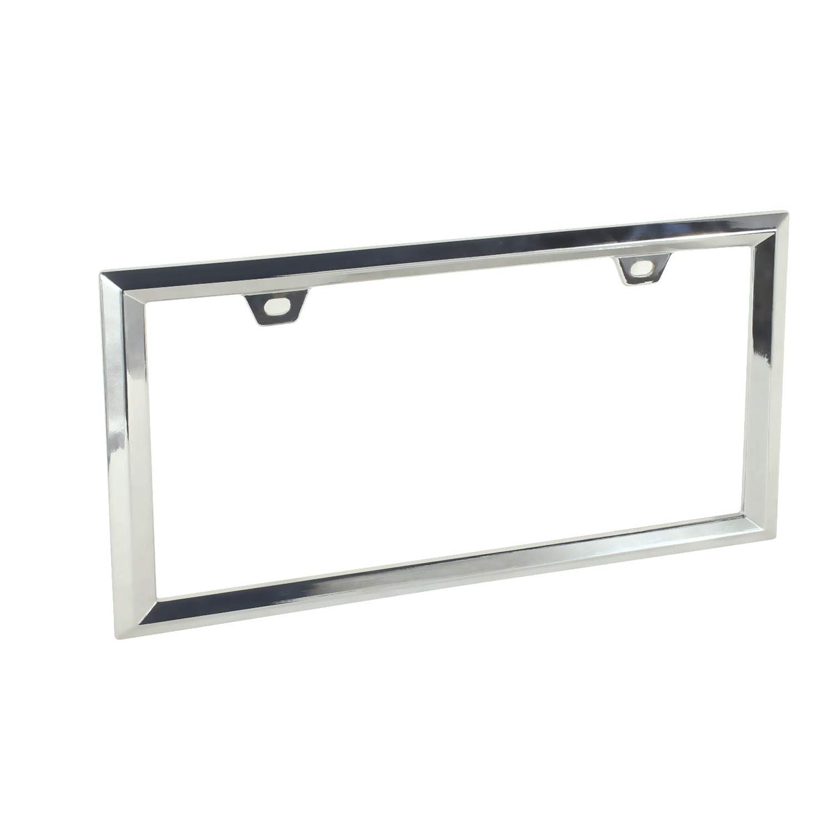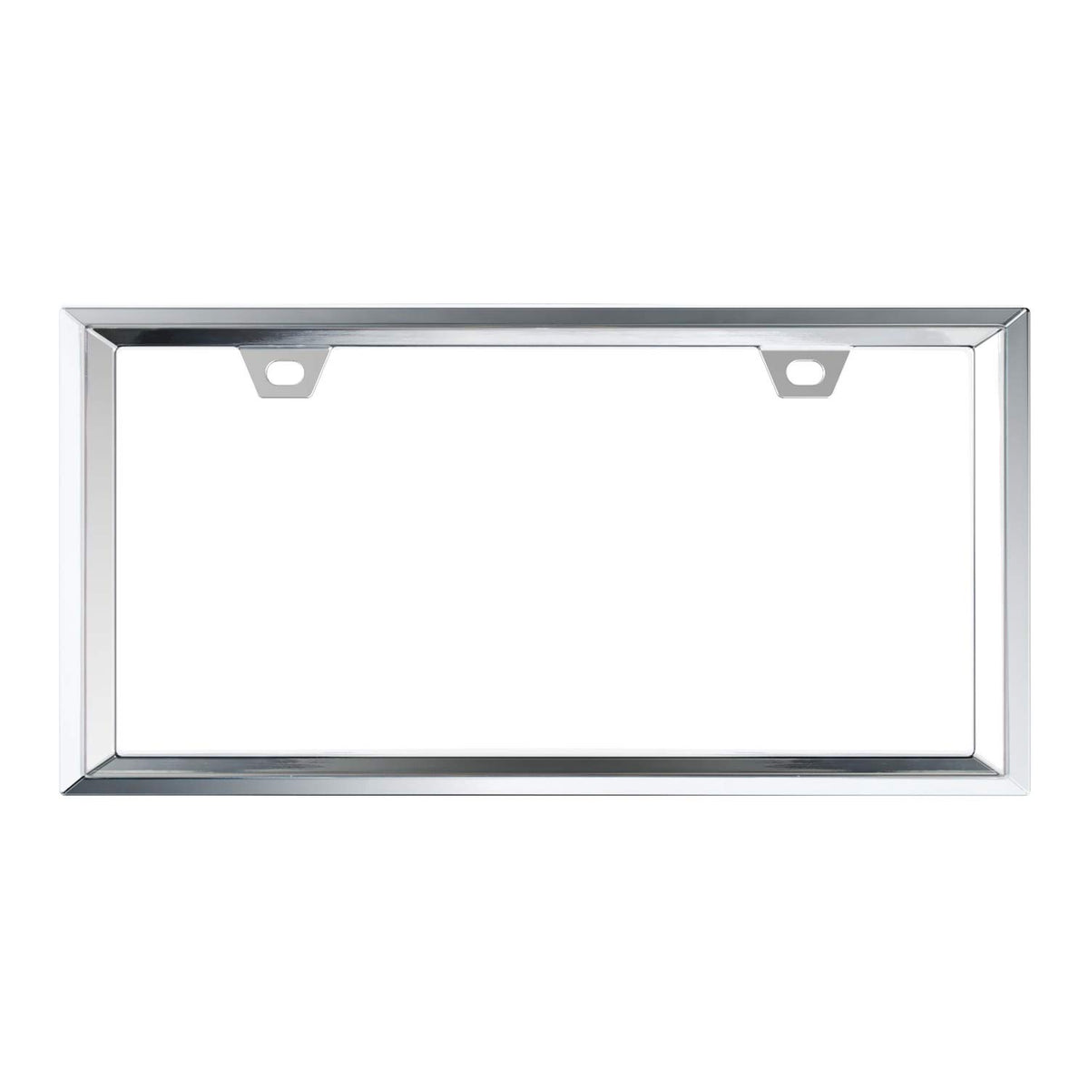 Q: Is this license plate frame weather resistant?A: Absolutely! The durable zinc die cast metal frame is plated with an extra shining finish that can withstand all weather conditions, including rain and car washes.