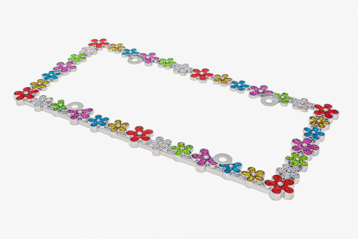 Vitality Design - Matt Black With Pink Glitter License Plate Frames. Daisies Wreath Around The Whole Plate. Shining Gliter Make Daisy Fresh And Cool, Nature, Full Of Vitality. Makes Your Car Sweety And Enjoy The Summer Sunshine. | Premium Quality - Made Of High Quality. Pure Zinc Alloy Metal, High Metal Hand Feel , Guaranteed Rust Free. | Easy To Install - Pre-Drilled Four Holes, Easy To Install And Mount License Securely With Included Mounting Screws, And Can Be Installed In Minutes Without Special Tool Required. Instructions On Back Of The License Plate Frame | U.S. Universal Size - Beautiful Gift Box Package. Fits All Standard 6X12 Inch Us & Canadian Novelty/License Plate Frames. Product Size Is 12.8*6.5*0.16 Inches. Weight Is 8.15Ounce, Packing Weight Is 13 Ounce, Which Suitable For Most License Plates | Us Base Corporation - Provide High Quality Customer Service. Any Request Will Be Respond Within 1 Business Day.