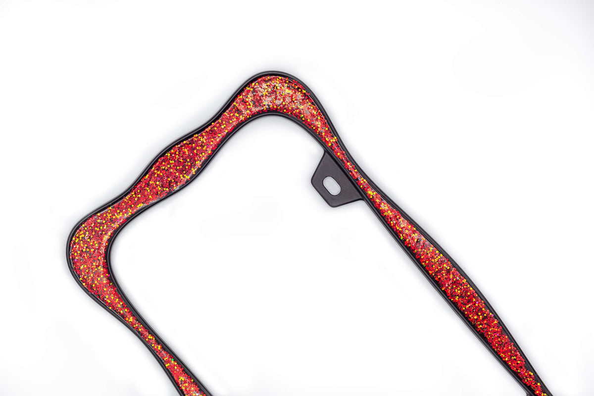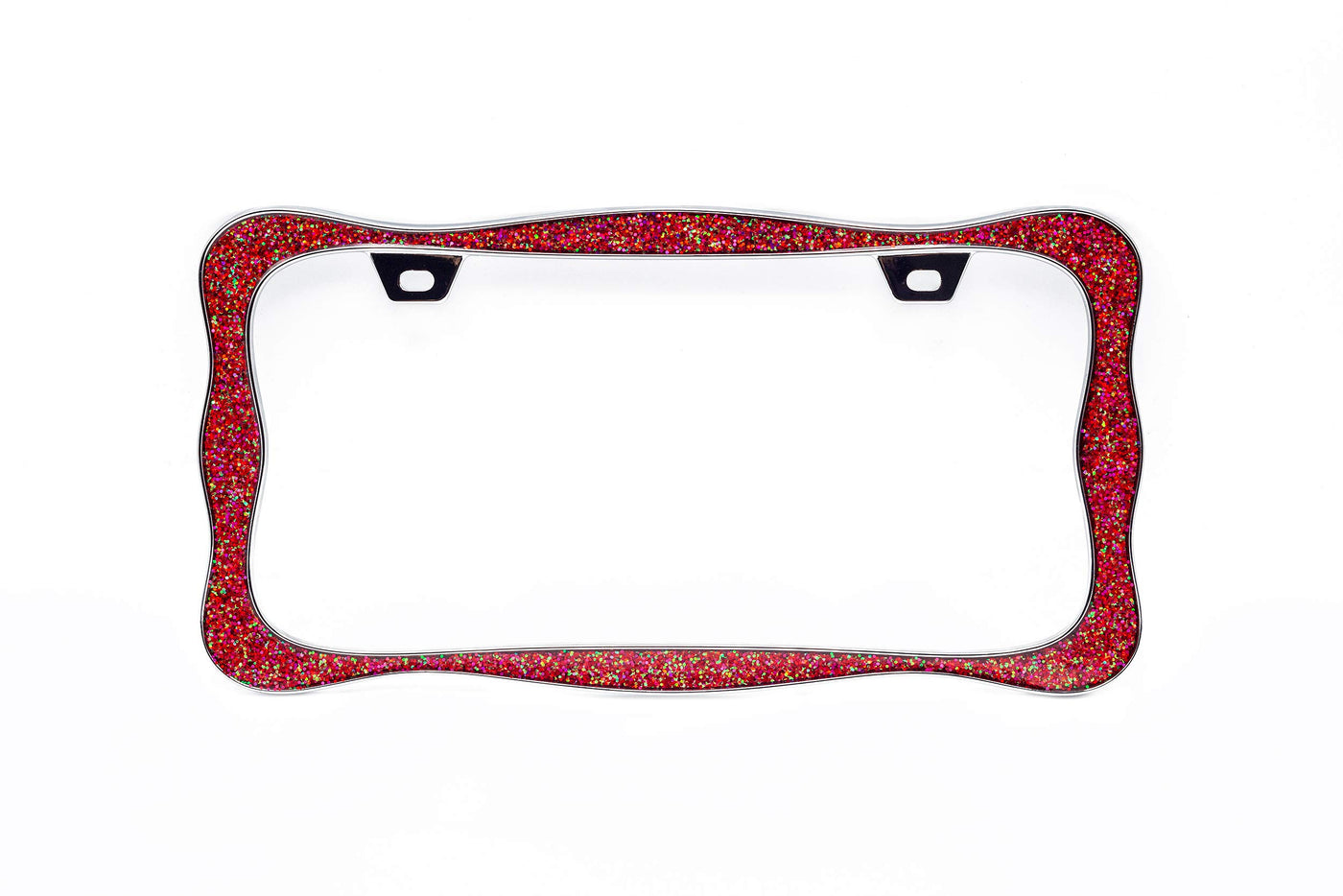 Creathome 3D Shining License Plate Frame, Black Powder Coated With Red Chunky Gliter, Pure Zinc Alloy Metal