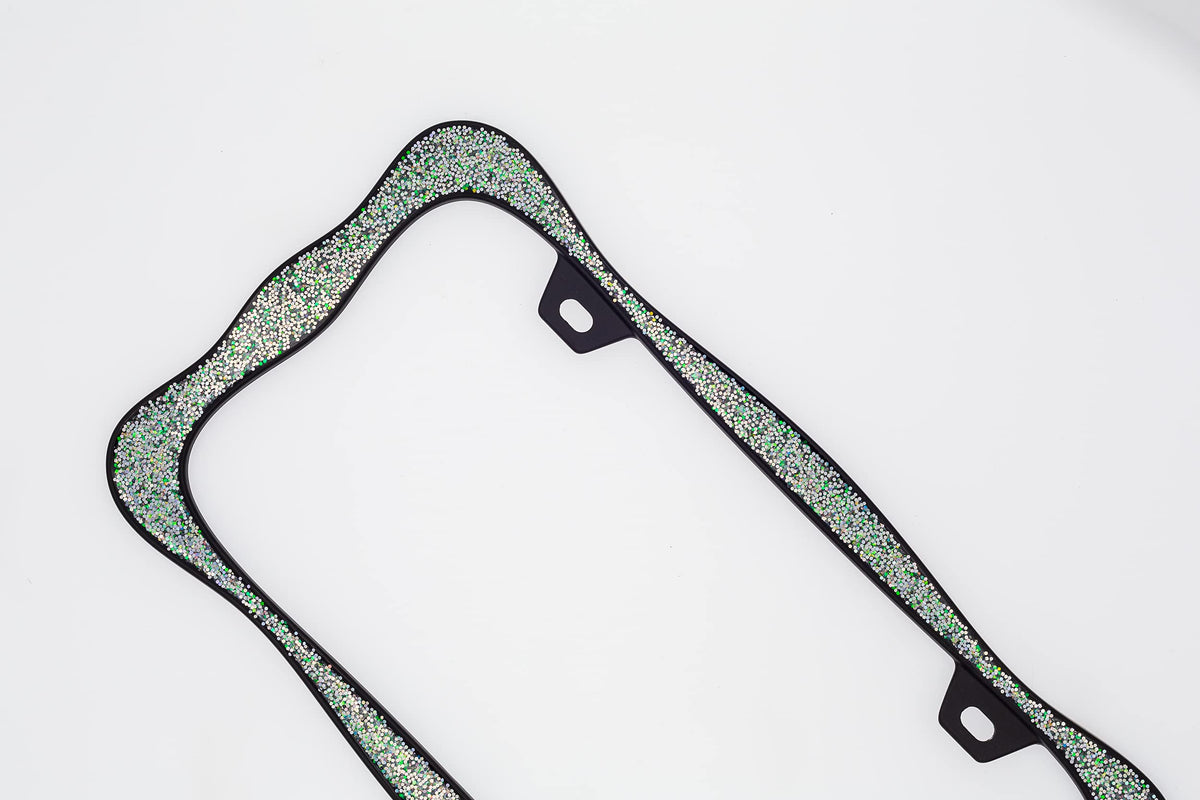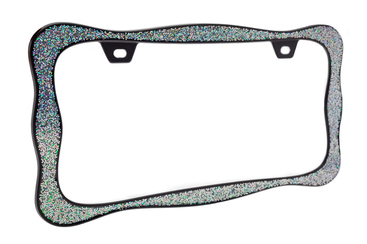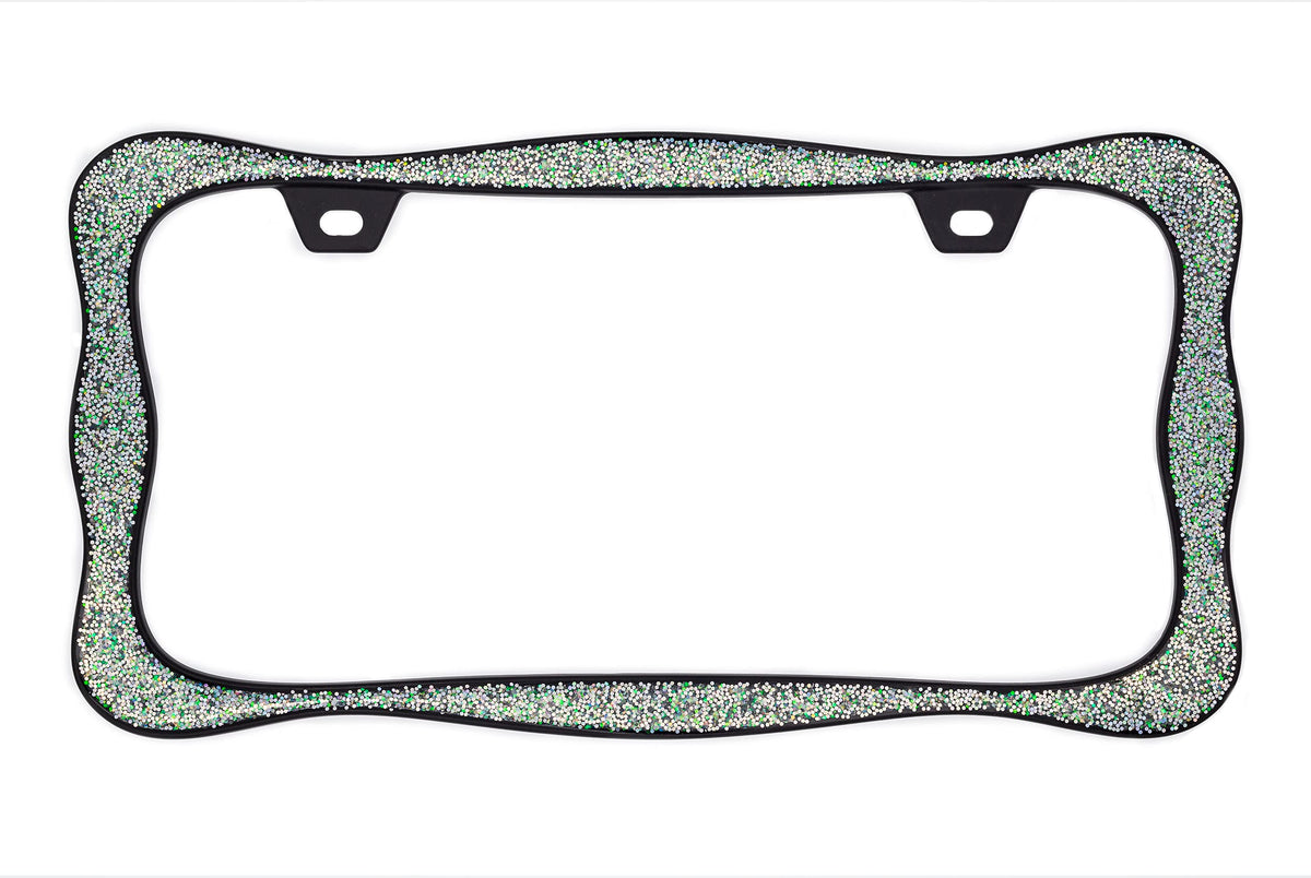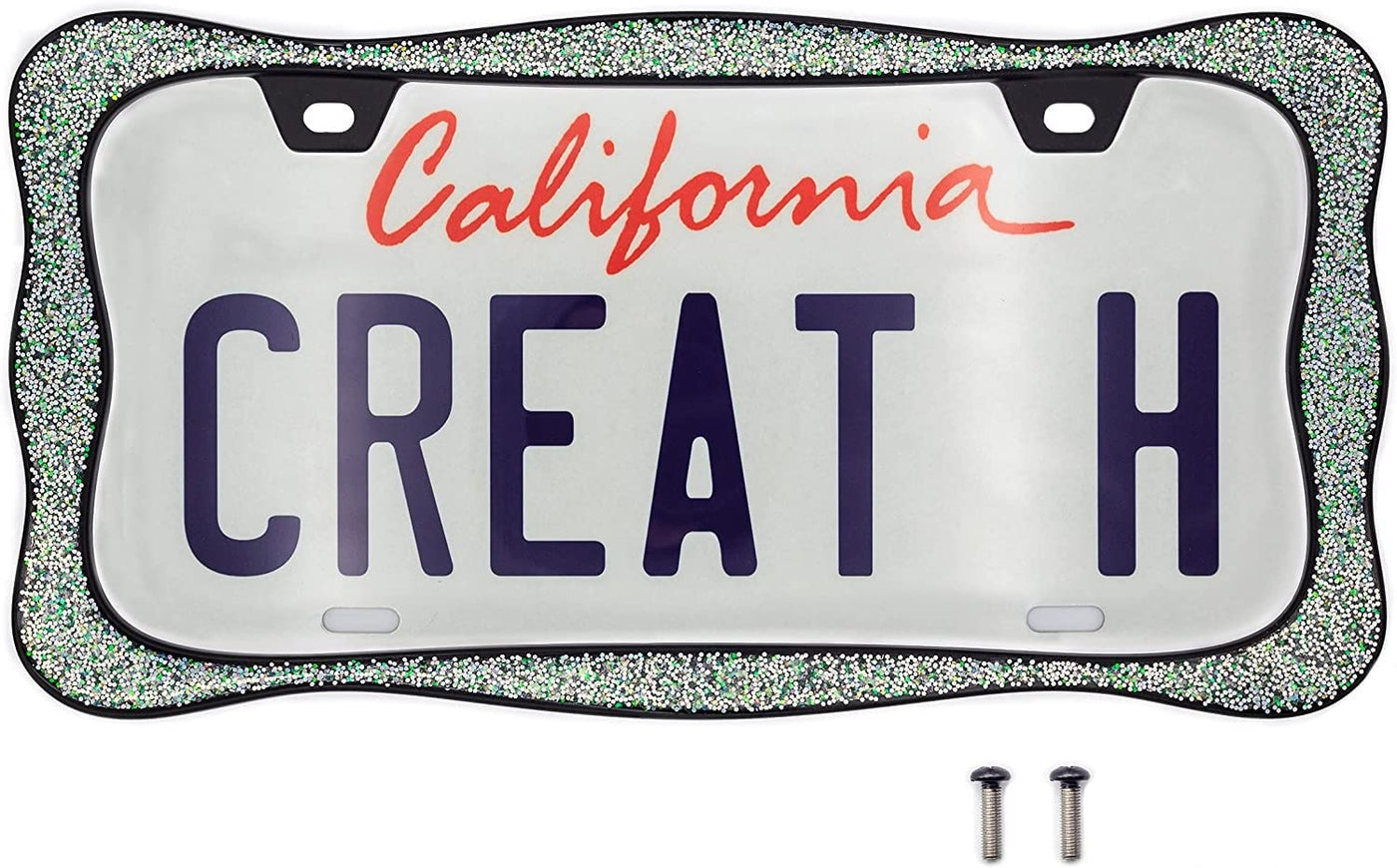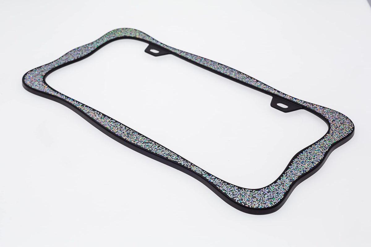 Creathome 3D Shining License Plate Frame, Black Powder Coated With Shining Sliver Chunky Gliter, Pure Zinc Alloy Metal