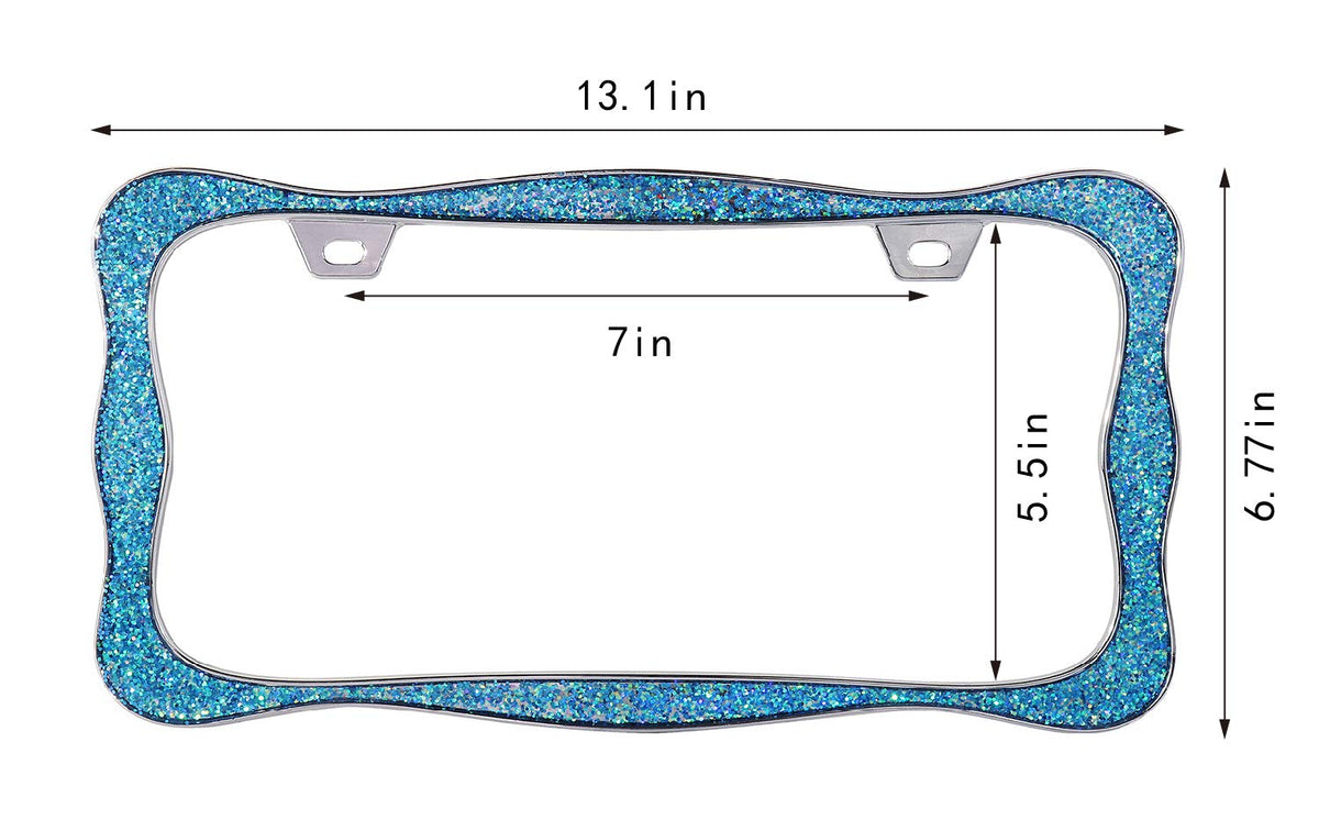 Wave Design Adds Stunning Look to your vehicle and makes the license plate frame a great gift idea Durable zinc die cast metal frame is plated with extra heavy chrome which can stand all weather conditions and car washes. Package Includes: - 1 x License Plate Frame