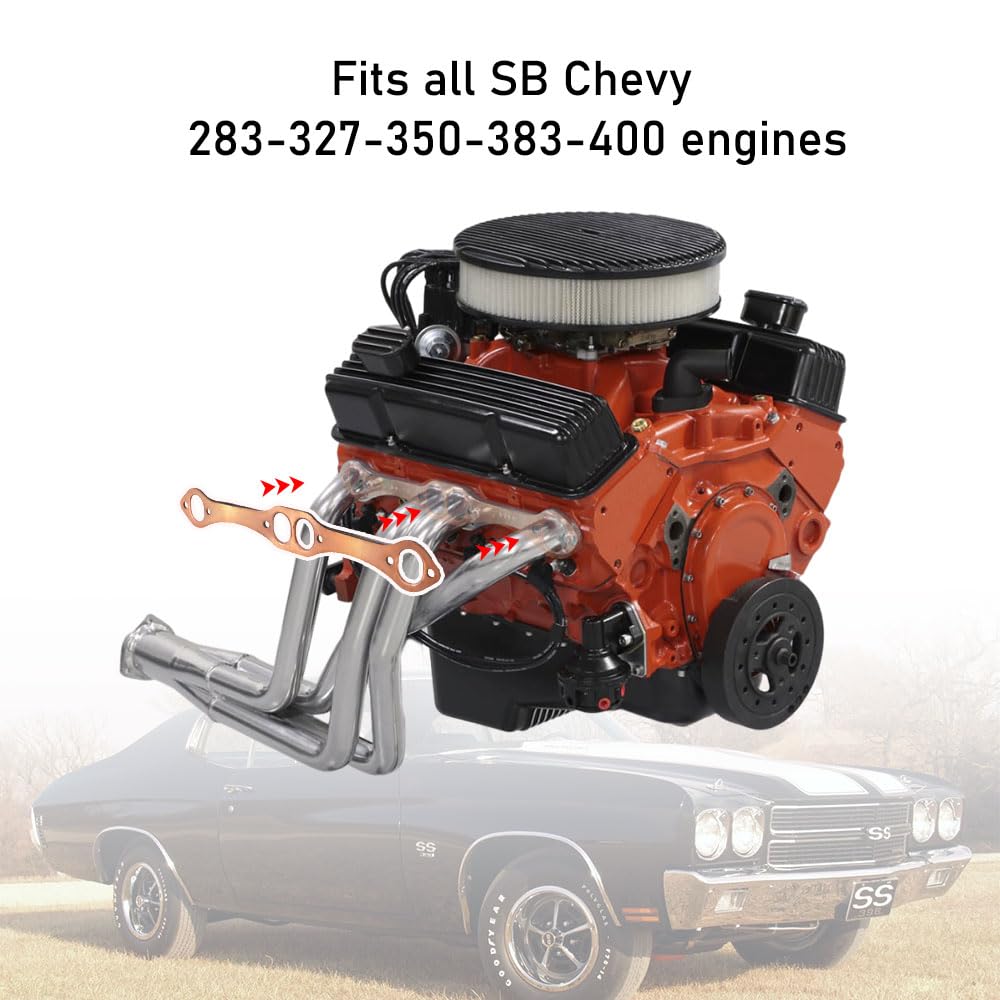 Creative.C SBC Header Gaskets, Oval Port Copper Exhaust Manifold Gaskets Compatible with Chevy 262 283 327 350 383 400 Small Blo