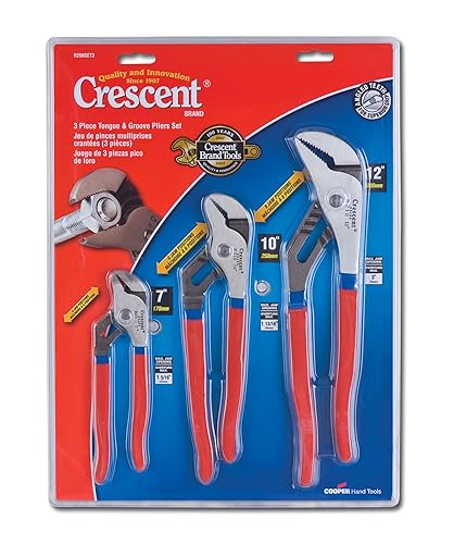 Crescent R200SET3 3 Piece 7-Inch, 10-Inch, and 12-Inch Tongue and Groove Plier Set