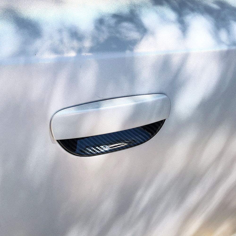 Q: What material is the door handle bowl cover made from?A: The cover is made of high-quality ABS plastic, featuring a three-layer processing method that includes background paint, pattern paint, and a transparent UV finish for durability and a carbon fiber grain look.