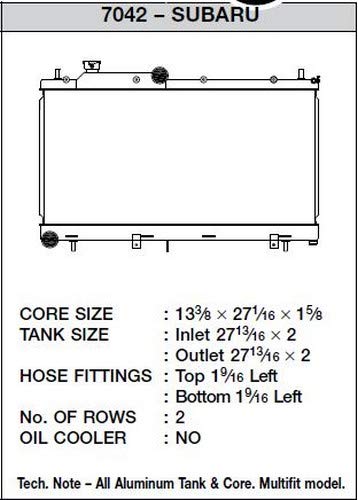 Q: What vehicles are compatible with the CSF RADIATOR 08-15?A: The CSF RADIATOR 08-15 is specifically designed for the Subaru Impreza WRX models manufactured between 2008 and 2015, ensuring a perfect fit and optimal performance.