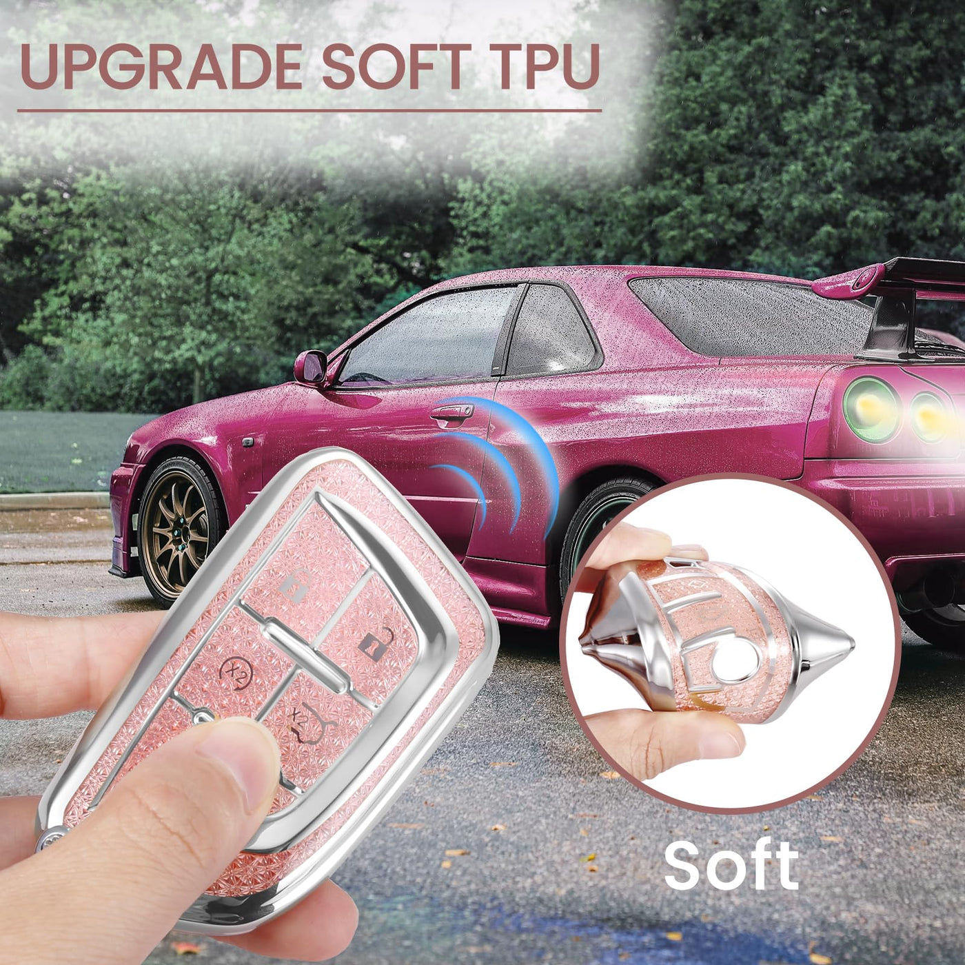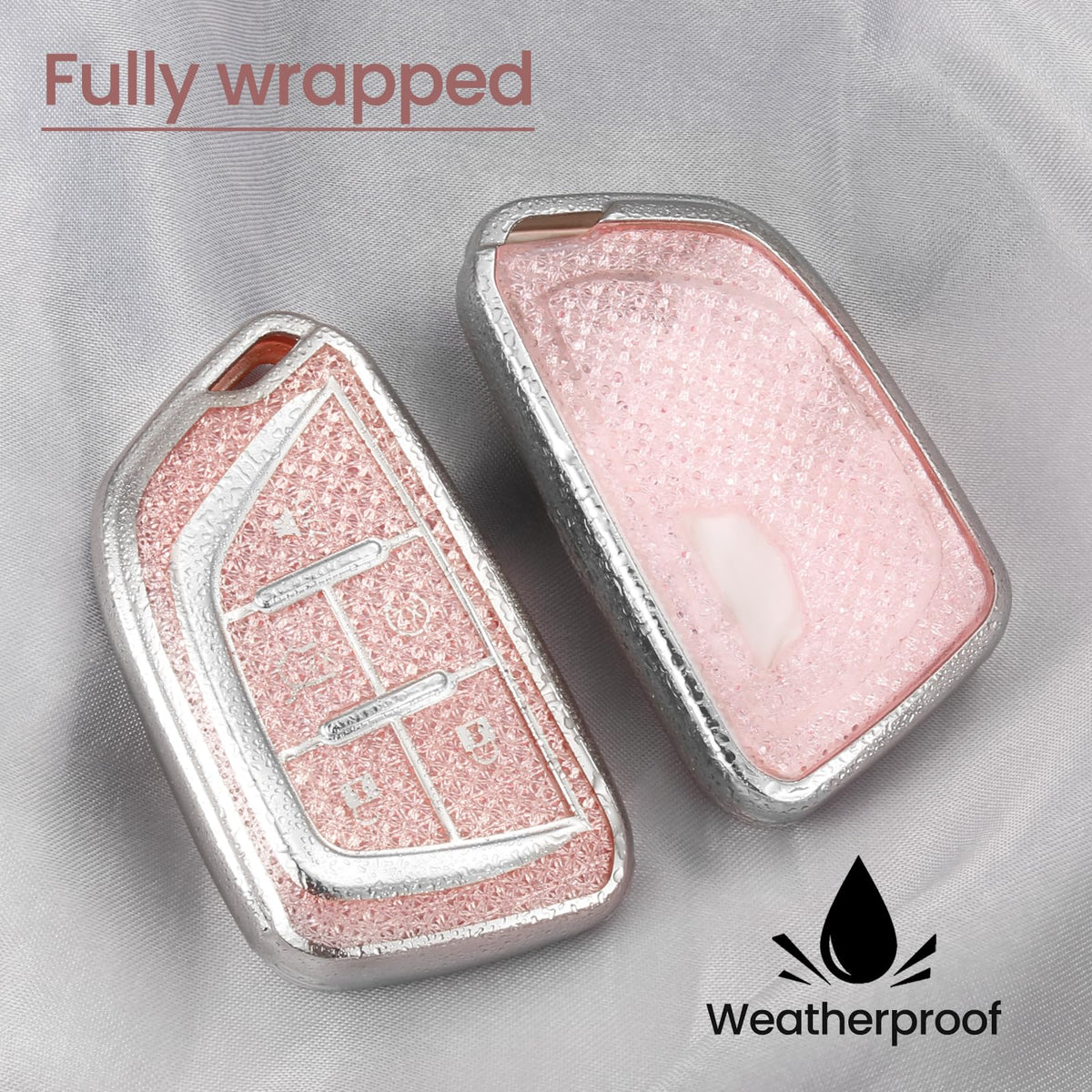 Ctrinews For Cadillac Key Fob Cover With Fashionable Zirconia Wristlet Keychain,Enchanting Diamond Patterns Soft Case For Escala