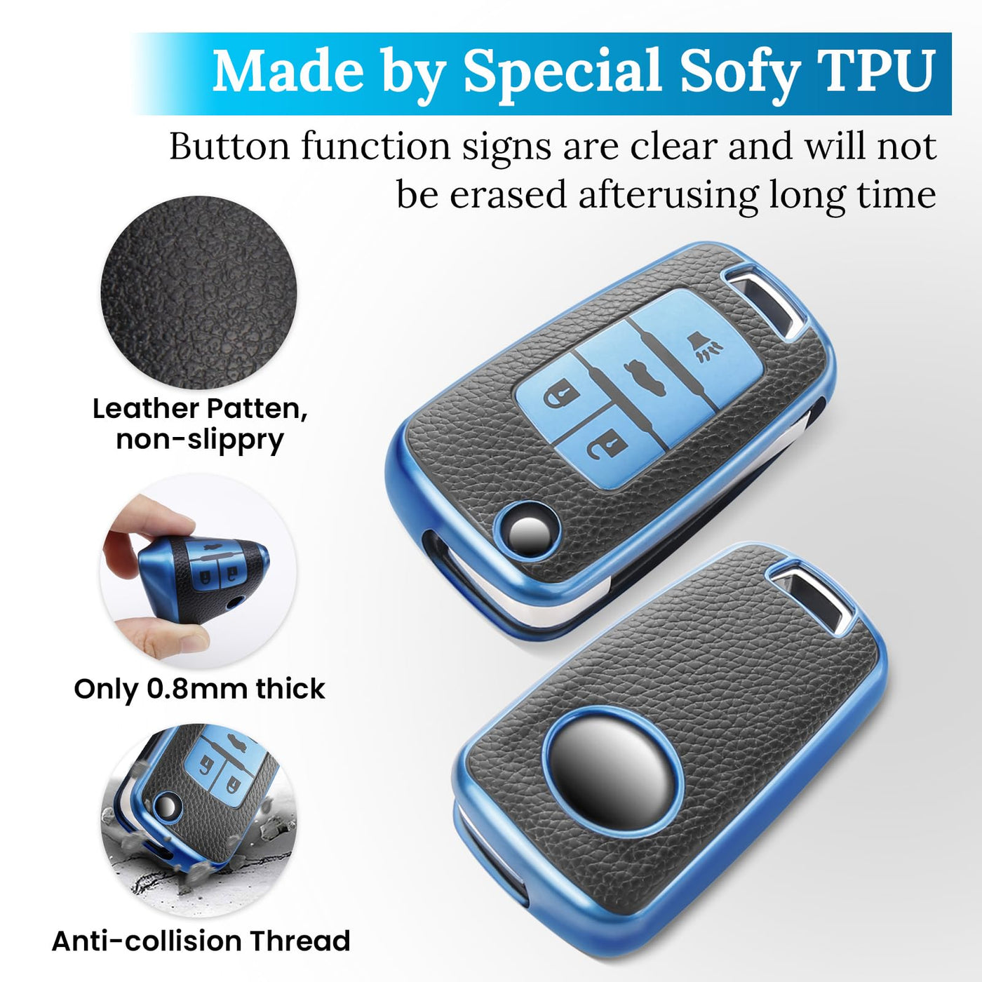 Ctrinews For Chevy Key Fob Cover With Carbon Fiber Style Belt Keychain,Upgraded Tpu Surface Grain Key Case For Cruze Equinox Mal