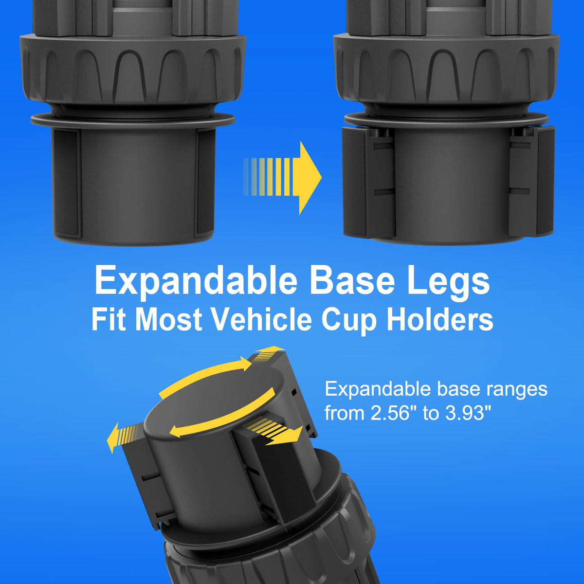 The Car Cup Holder Expander is an essential accessory designed to enhance your driving experience by providing a practical solution for holding large cups, water bottles, coffee mugs, tumblers, and various other drink containers in your vehicle. This automatic cup holder extender adapter offers a versatile and universal compatibility, ensuring it fits seamlessly into any truck or car's standard cup holder. With its adjustable and expandable design, this cup holder organizer insert can accommodate a wide range of cup sizes, making it extremely convenient for those who enjoy their beverages in larger or bulkier containers. Compatible with Whether you own popular brands like Yeti, Hydro Flasks, Nalgene, Stanley, Camelbak, Owala, Contigo, or any other 12oz, 18oz, 26oz, 32oz, 40oz, 46oz, or even 64oz containers, this expandable cup holder is the perfect companion to securely hold your favorite drinks while on the move. Say goodbye to spills and unstable cup placements. With its sturdy construction and reliable grip, the Car Cup Holder Expander ensures that your drinks stay firmly in place, even during bumpy rides and sharp turns. The durable materials used in its manufacturing guarantee long-lasting performance, making it a worthwhile investment for any vehicle owner. Upgrade your driving experience with this must-have cup holder expander that brings convenience, stability, and versatility to your daily commute or road trips. Say goodbye to worrying about where to place your oversized cups or bottles, and say hello to a tidy and organized car interior. Get your Car Cup Holder Expander today and make your next drive more enjoyable and hassle-free.