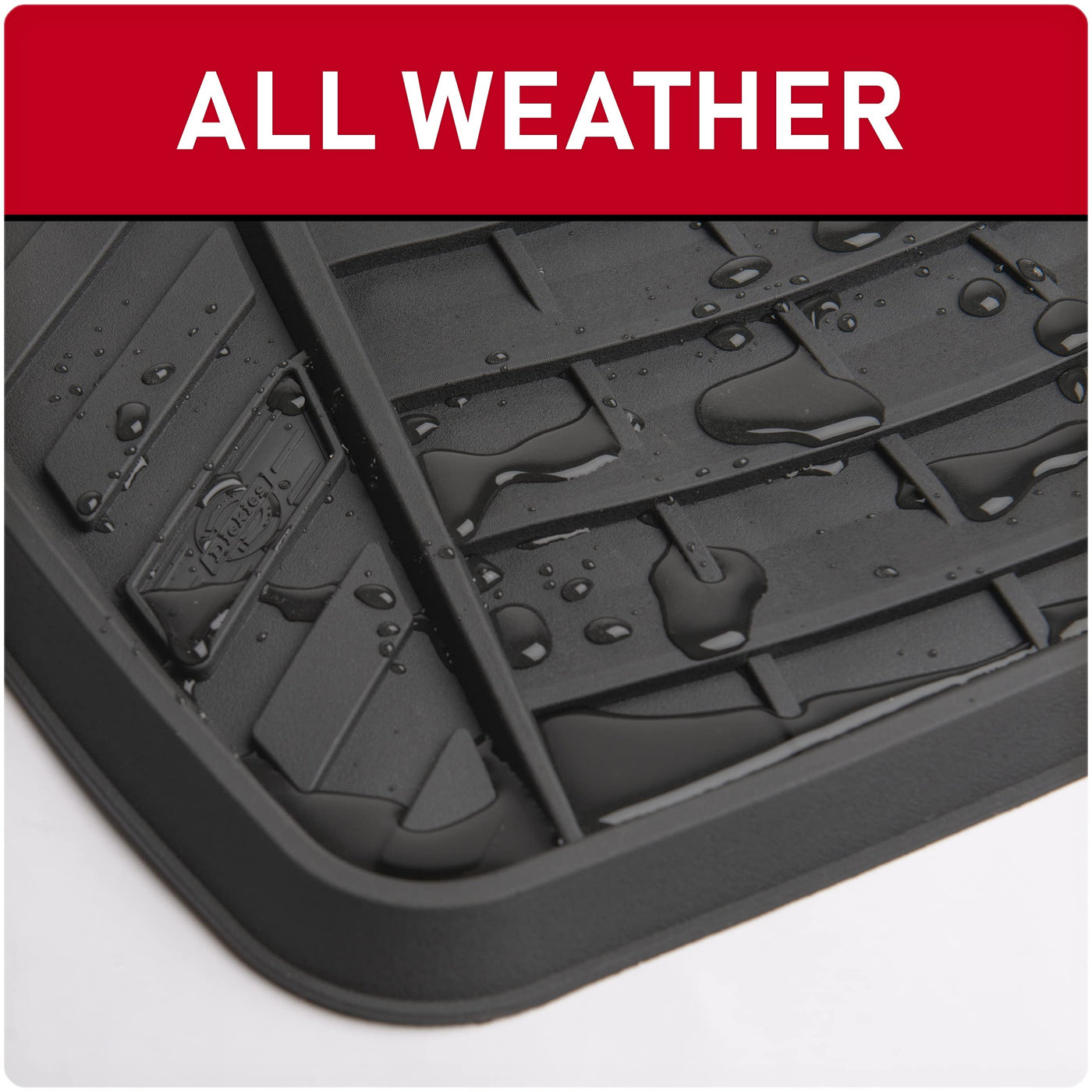 If You'Re Looking For Exceptional Protection For Your Vehicle'S Floor, Look No Further Than Dickies 4-Piece Black Heavy-Duty No-Trim All-Weather Floor Mats. Sculpted To Trap Salt, Mud, And Debris, These Durable Mats Direct Water And Grime Away From Your Feet. Constructed For A No-Trim Fit, Each Mat Is Ready To Go Right Out Of The Package, Providing Quick And Easy Installation In Cars, Trucks, Suvs, And Minivans. These Mats Feature Reinforced Heel Pads For Enhanced Defense In An Area Known For Extra Wear And Tear. The Anti-Slip Backing Prevents Sliding And Shifting, Allowing Each Mat To Stay Safely In Place. Made From A Tough Polymer Material For Long-Lasting Performance, The Mats Maintain Their Pliability In Extreme Temperatures. This Set Delivers Full Coverage For Your Carpet, And A Protective Non-Stick Surface Makes Cleaning A Breeze With Soap And Water. Keep Your Interior In Great Shape With A Brand You Can Trust And Get Dickies 4-Piece Black Heavy-Duty No-Trim All-Weather Floor Mats.