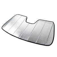 Keep your car cooler and protect your investment with this custom-fit sunshade, designed specifically for your vehicle car accessories. Spec & Features: 1) Perfect Fit & Blocks Heat Car Sun Shade Windshield: Tailored for your car with precision cutting for a gap-free, secure fit. Reflective Mylar film reflects sunlight and keeps your car significantly cooler. 2) Protects from Sun Damage: Shields your dashboard, steering wheel, and seats from harmful UV rays that can cause cracking and fading. 3) Easy & Quick Installation: Pops open in seconds for immediate use and folds for compact storage. No assembly required! 4) Durable & Reliable: Made with high-quality materials like reflective Mylar and felt backing for long-lasting performance. 5) Bonus Feature: Includes a convenient storage pouch for easy folding (no rolling necessary). Tech Specs: 6) Material: Reflective Mylar Film (Front) & Felt Backing (Back) 7) Anti-Droop Design: Built-in support boards prevent sagging 8) Temperature Reduction: Up to 30F decrease in parked car temperature Dimensions: Length(Inch): 27.5'' Width(Inch): 54.0''