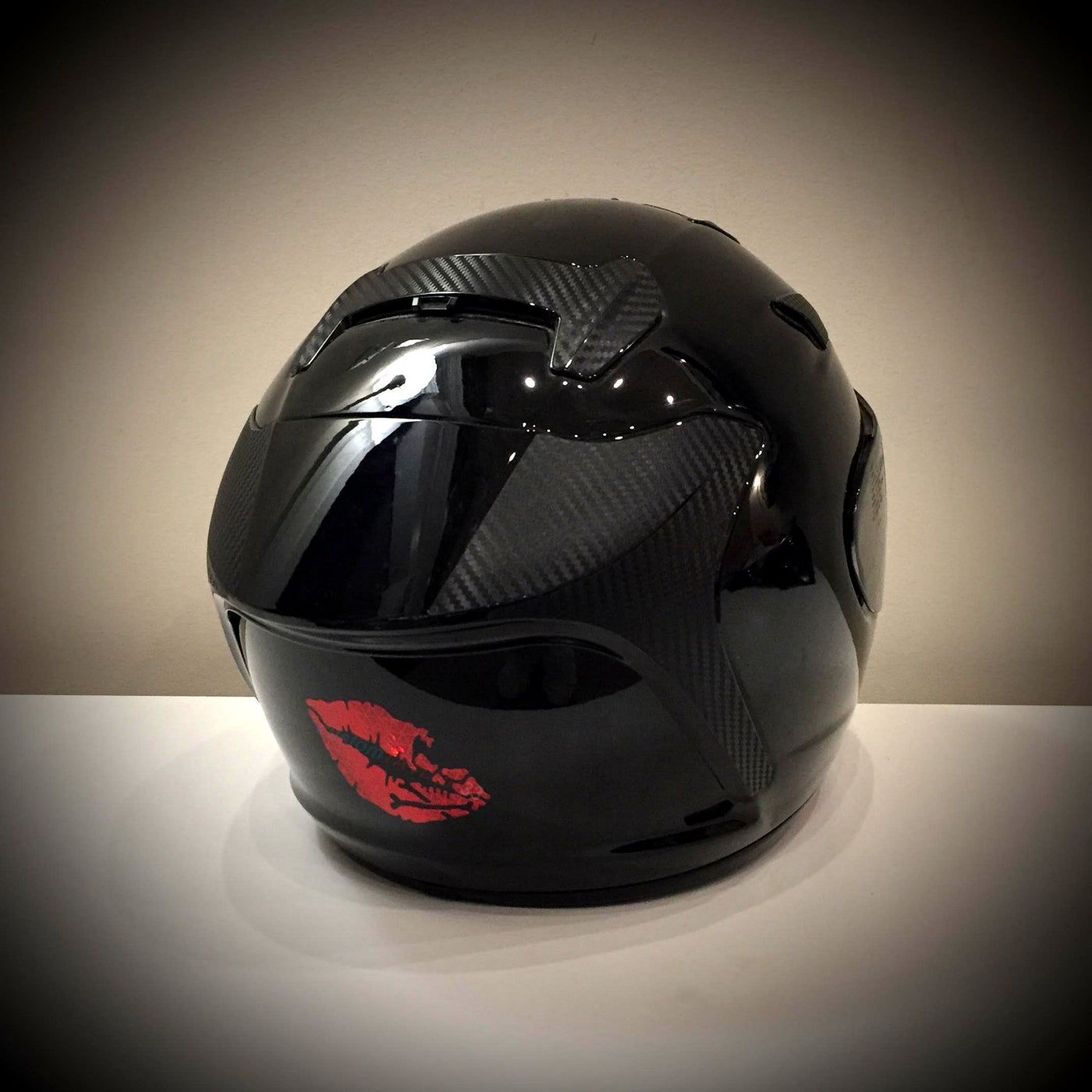 Customtaylor33 High Intensity Reflective Vinyl Death Kiss Skull Crossbones Lips Decal Bumper Sticker - Cars, Motorcycles, Helmets, Wind Screens, Laptops (18 Inches Wide, Red)