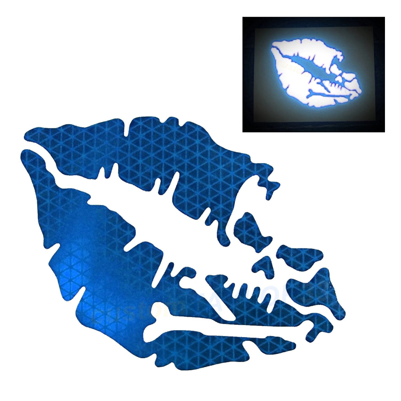 Customtaylor33 High Intensity Reflective Vinyl Death Kiss Skull Crossbones Lips Decal Bumper Sticker - Cars, Motorcycles, Helmets, Wind Screens, Laptops, Cellphones, (Blue, 12 Inch Wide)