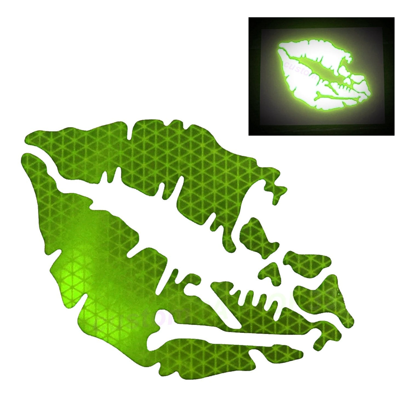 Customtaylor33 High Intensity Reflective Vinyl Death Kiss Skull Crossbones Lips Decal Bumper Sticker - Cars, Motorcycles, Helmets, Wind Screens, Laptops, Cellphones, (Se Lime Green, 12 Inch Wide)