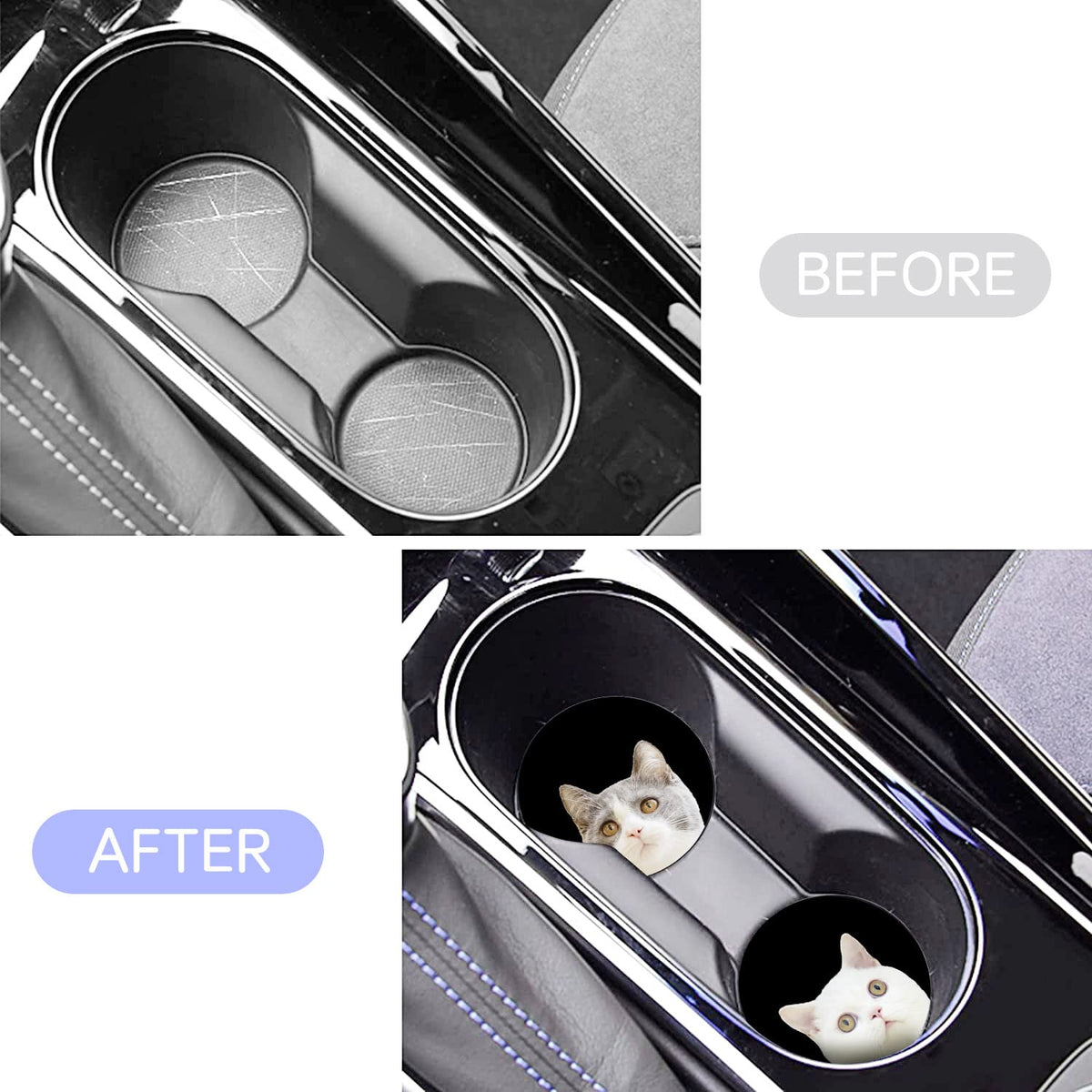 Cute Cat Funny Cat Car Coasters, 2Pcs 2.75'' Car Cup Holder Coasters Silicone Car Cup Holder Insert Coasters For Women Car Inter